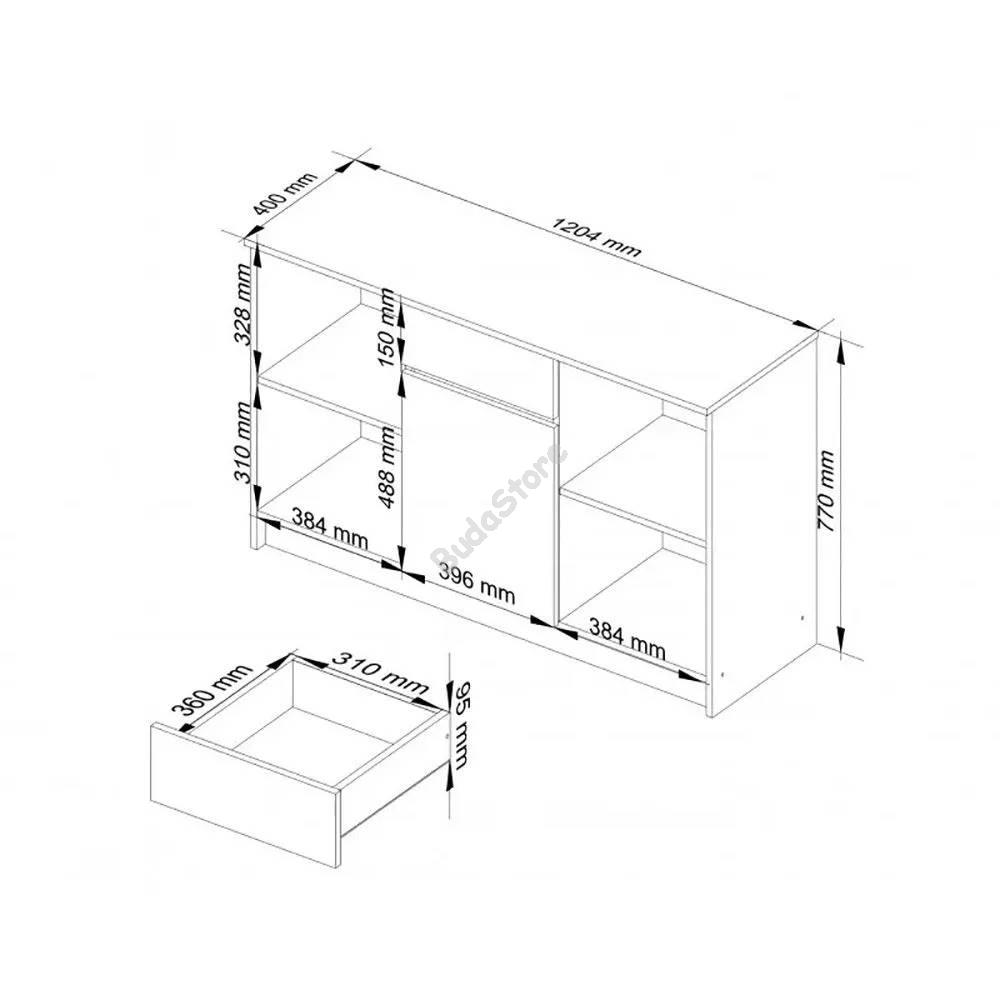 1-fiókos 1-szekrényes nyitott polcos komód 120x77x40cm HOP1001393