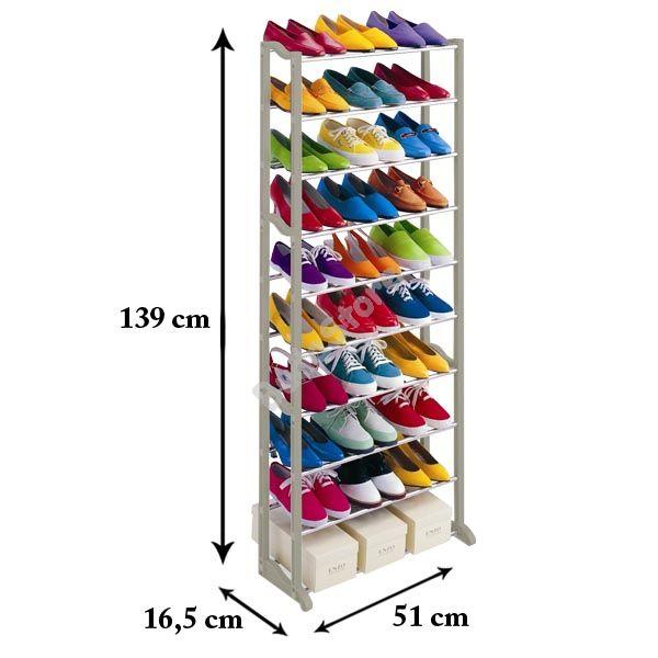 Cipőtároló polcunk megoldást nyújt a bejárati ajtó előtt heverő cipőkupacokra, és a szekrényben található kuplerájra. Akár 30 pár cipő is elférhet rajta, Keskeny, így akár a gardróbban is tarthatod, de az előszobában sem lesz útban. Szerkezete könnyen össze- és szétszerelhető, könnyű, de stabil. Iskolákban, óvodákban is jó hasznát vehetik a kicsik cipőinek tárolására.