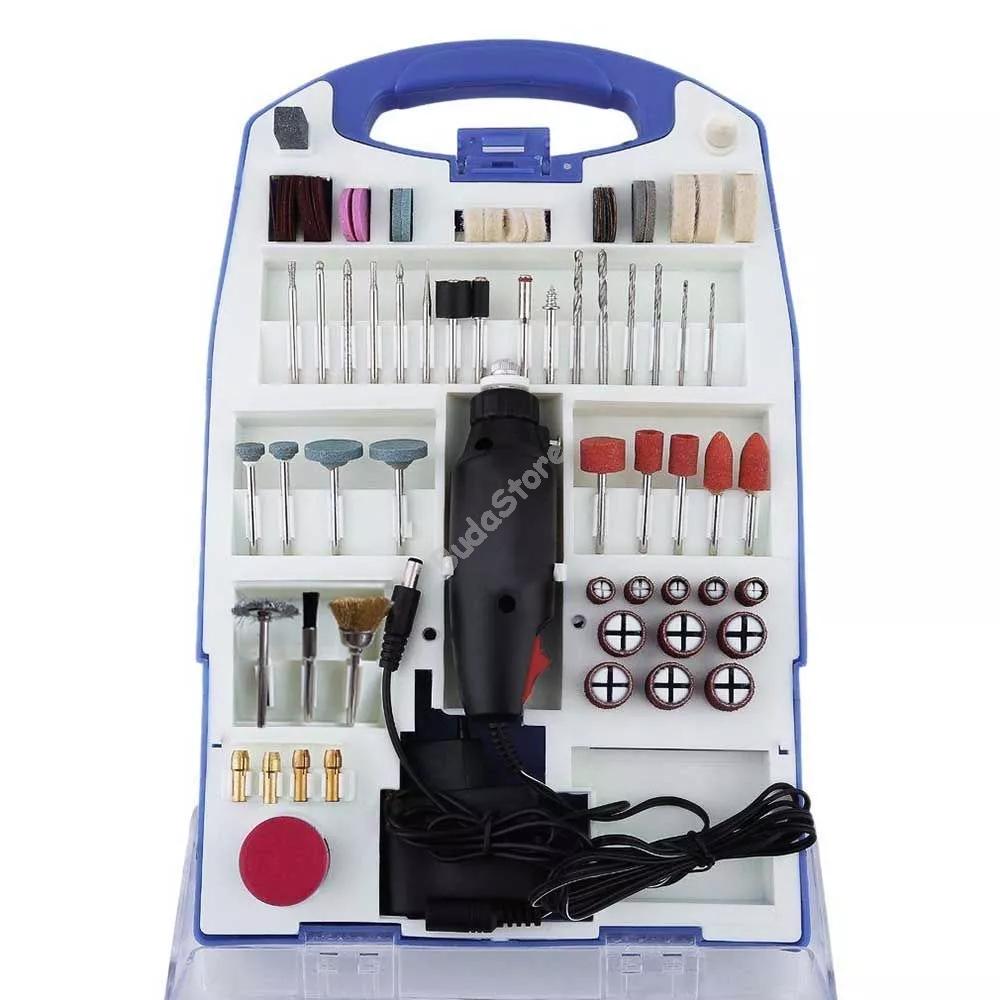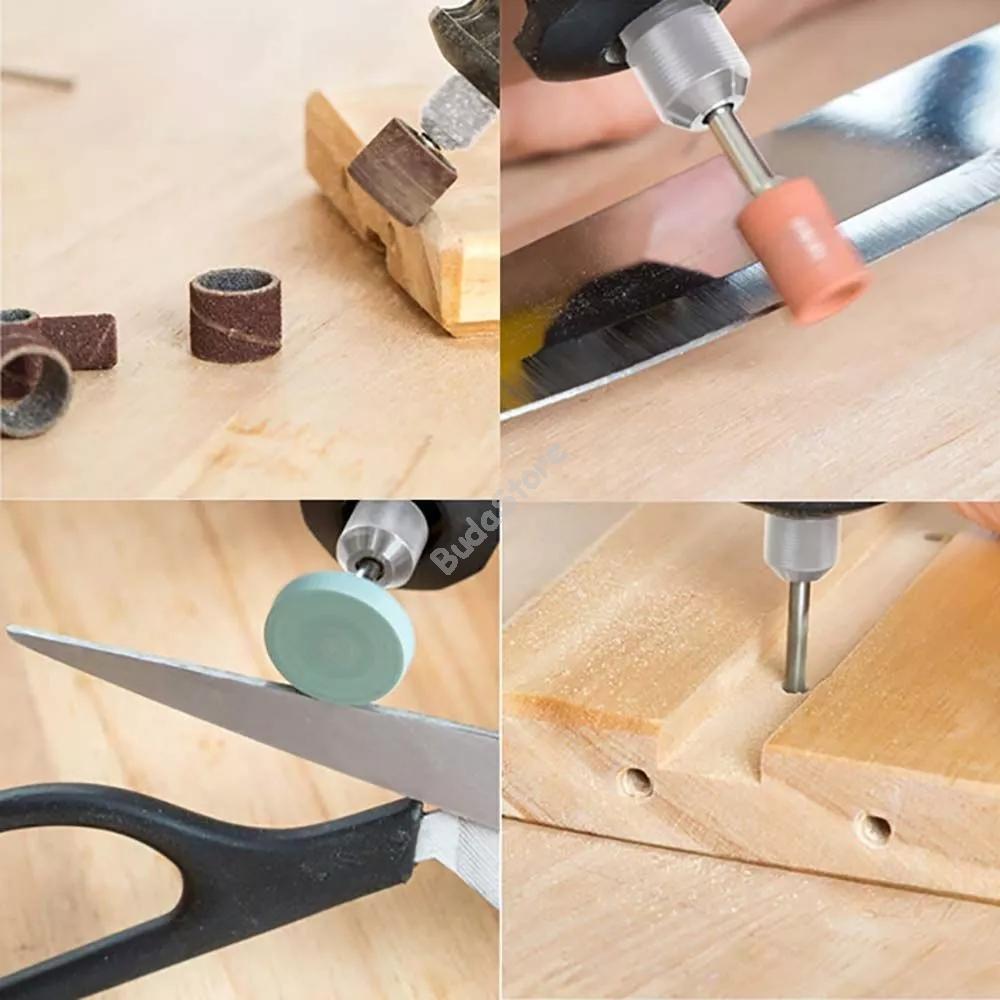 Hobbi barkács készletünk 103 különféle alkatrészt tartalmaz, melyekkel otthon kiélheted kreativitásod, hiszen nem csak barkácsoláshoz, de akár dísztök faragásához is alkalmas. Ideális fa, fém, műanyag és kő megmunkálására, fúrásra, csiszolásra, marásra, gravírozásra, vágásra és polírozásra is.