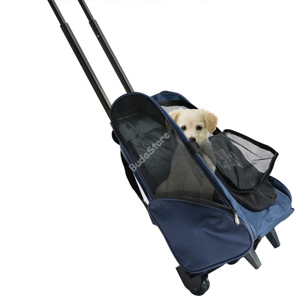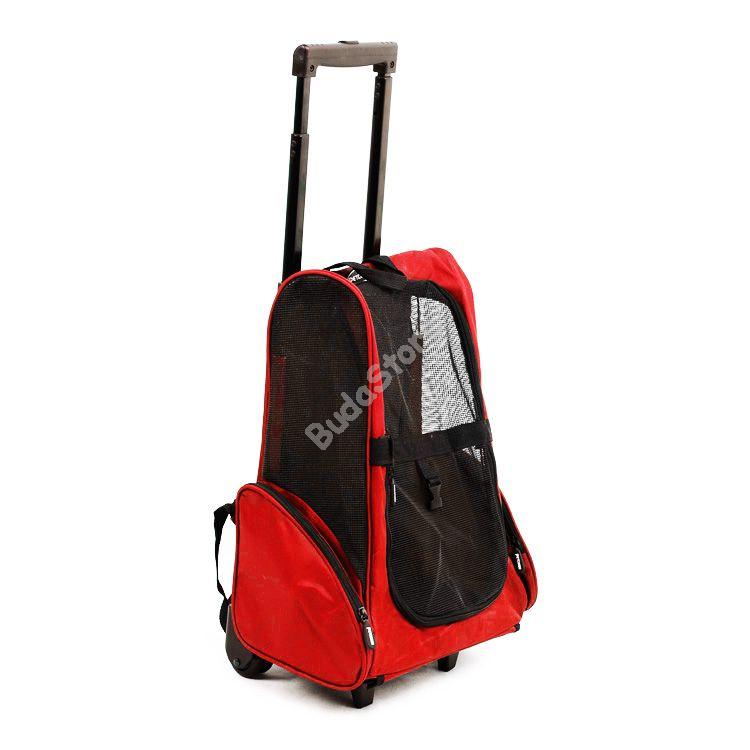 A kisállat hordozó táska macskák, kutyák, nyulak és más állatok számára biztonságos az utazásokhoz. Tökéletes megoldás nyaraláshoz, kiránduláshoz vagy orvosi látogatáshoz. A hordozót hátizsákként is viselhetjük, de kerekeinek köszönhetően a földön is húzható. A táska teherbírása 15 kg, így a kisebb termetű állatok szállítására alkalmas. A hordozó oldalát hálós anyag borítja, két oldalán pedig zsebek találhatók. A fém fogantyú és a hátizsák pántja állítható, így kényelmesen használható. A hordozó ajtaja cipzárral nyitható, nagy méretének köszönhetően könnyebb beszállást tesz lehetővé.