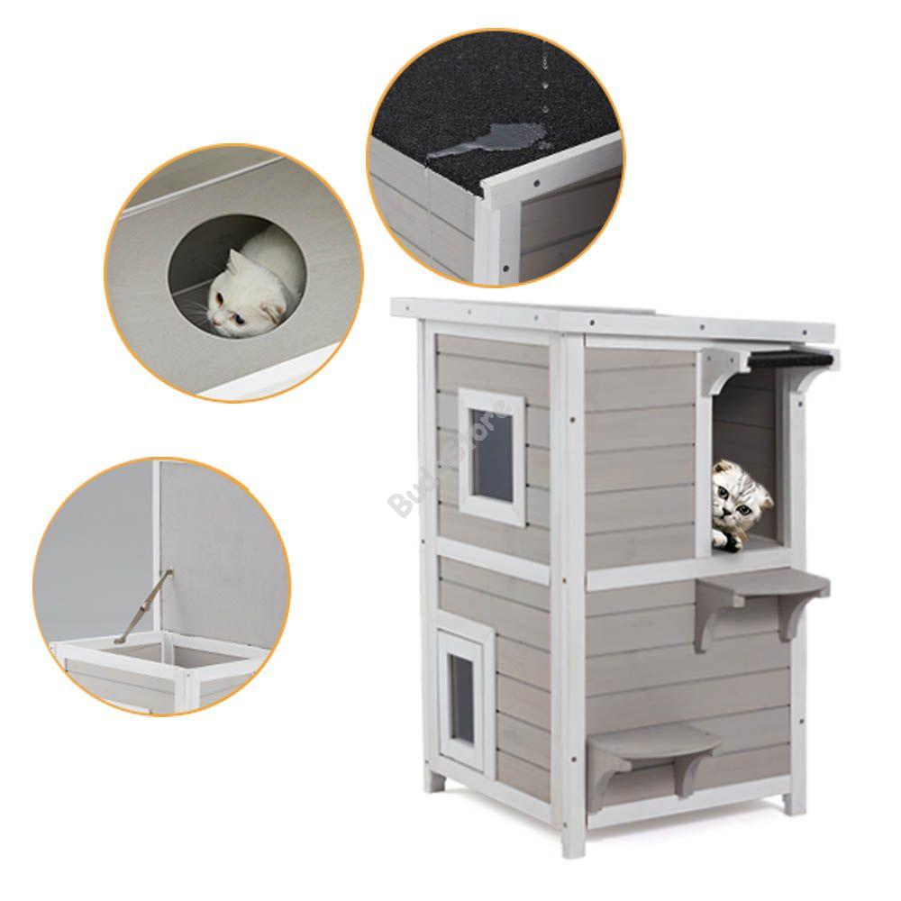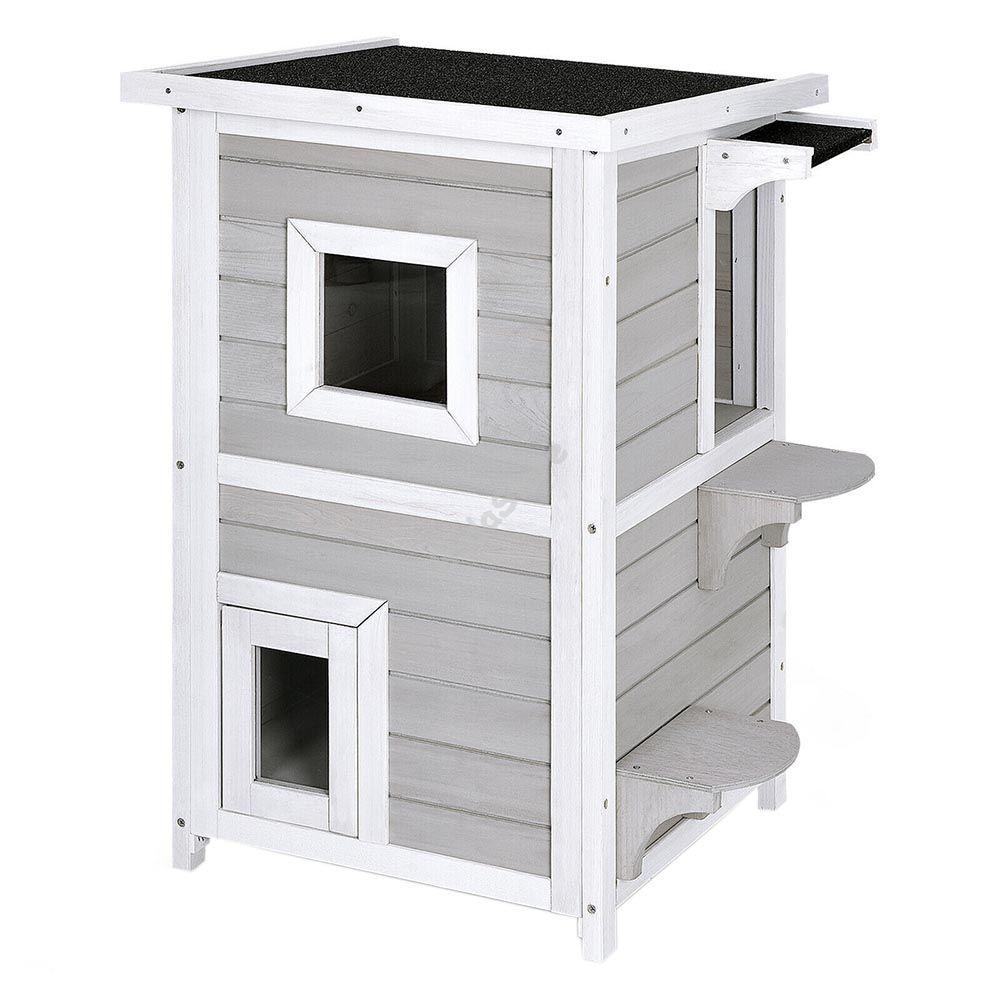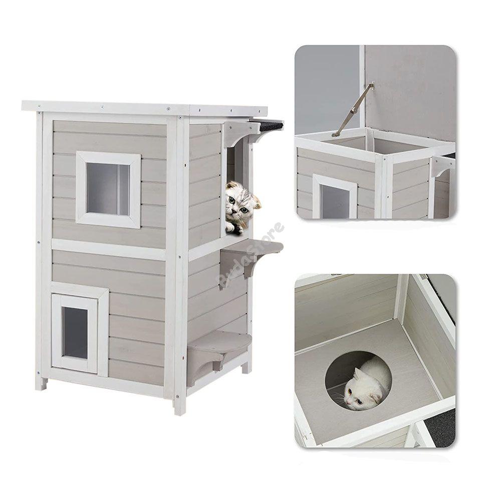 Ha létezik kutyaház, miért ne létezne macskaház is? Ajándékozd meg kedvencedet egy 2 szintes házikóval melyben kedvére árnyékba vonulhat, és kis ablakán át kémlelheti környezetét. A szintek nem csak kívül, de belül is átjárhatóak a közlekedő lyuknak hála. A macskaház kivitelezésének köszönhetően kiállja az időjárás viszontagságait ugyanis felnyitható teteje víz, és hőálló burkolatot kapott.