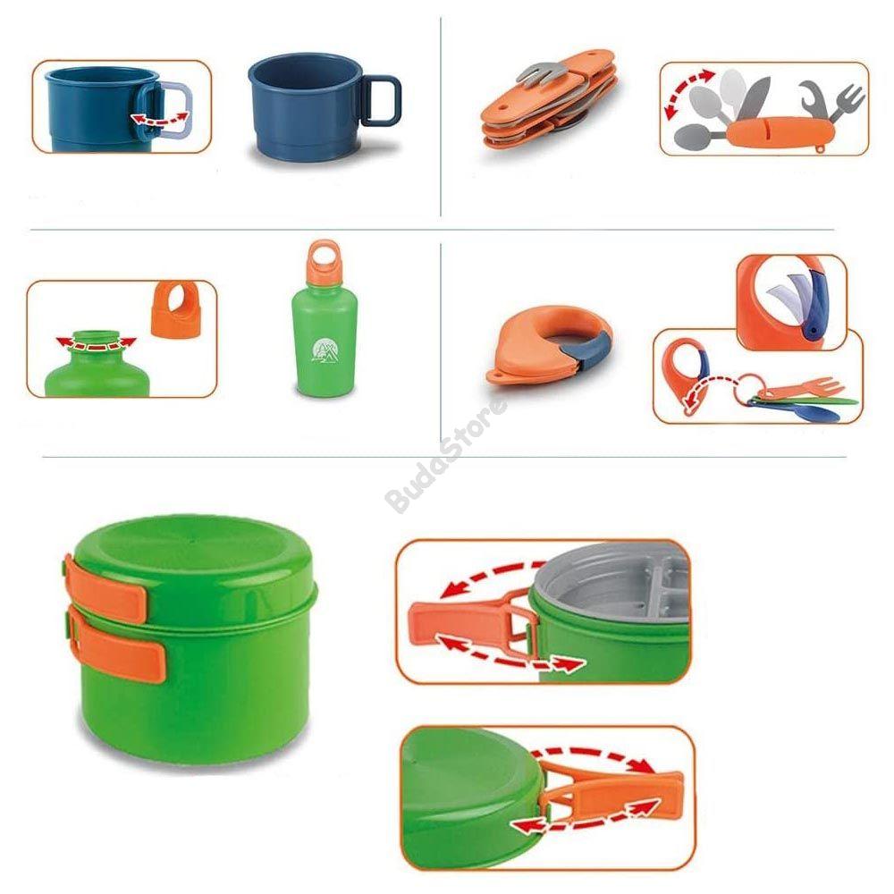 Játék kempingszett a legkisebb túrázóknak! Talán nincs olyan gyerek, aki ne élvezné a természetben töltött időt, akár túrázásról, akár csak a kertben felállított sátorozásról legyen szó. A 29 részes játék kemping szettel most garantáltan mindene meglesz a gyerekeknek ahhoz, hogy felfedezzék a kinti világot. Játék gázégővel, edényekkel, késekkel és további játék kiegészítőkkel élhetik bele magukat a kempingezés izgalmaiba.