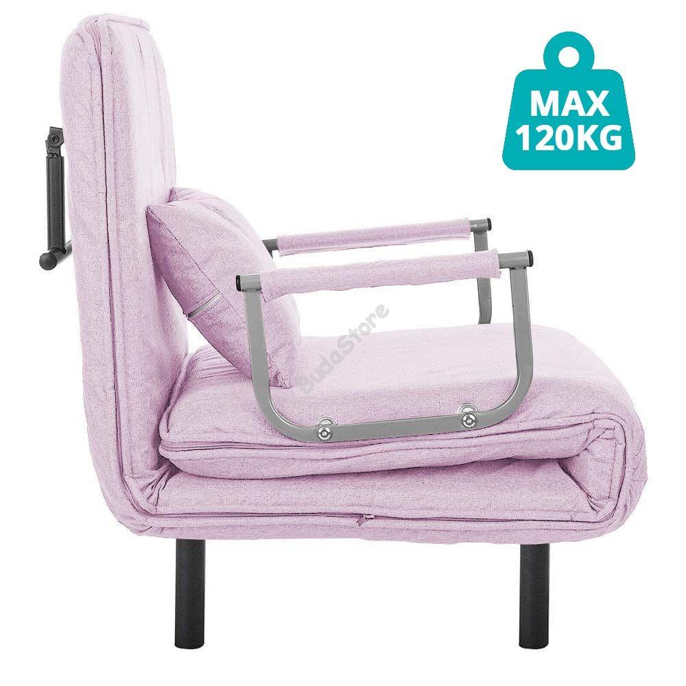 Rendkívül kényelmes és helytakarékos megoldást kínál otthonodba, akár te vagy vendégeid vennék igénybe. Elegáns dizájnjával és több választható színével biztosan megtalálod a stílusodnak megfelelőt. Párnázott karfái biztosítják a kényelmes pihenést egy beszélgetés vagy tv nézés közben is. Könnyedén kinyitható, így pillanatok alatt kényelmes fekhelyet varázsolhatsz belőle. 6 cm-es párnázata biztosítja a kényelmes használatot akár fotelként, akár ágyként használod éppen. Kialakítása, praktikussága és széles színválasztéka miatt ez a fotelágy egy valódi kincs lehet otthonodban. Maximális teherbírása 120 kg.