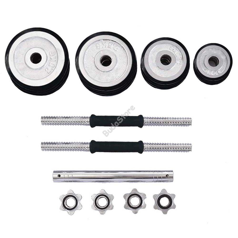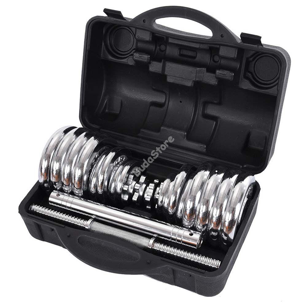 Akik a változatos és sokoldalú edzést kedvelik azok számára tökéletes választás a 2 az 1-ben súlyzókészlet. Összesen 16 db súlyt tartalmaz, illetve egy praktikus, szétszerelhető tartórudat, mely egyaránt alkalmas egykezes, vagy akár kétkezes súlyemeléshez. Tárolása, és hordozása rendkívül egyszerű a hordozható dobozának köszönhetően. A készlet tartalmazza a súlyok, és a rúd köré helyezhető gumi karikákat is, melyek védik a padlót, valamint jobb fogást biztosítanak.