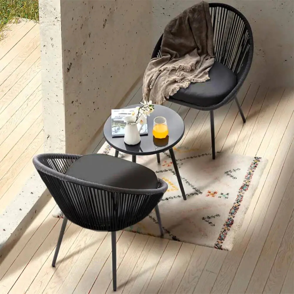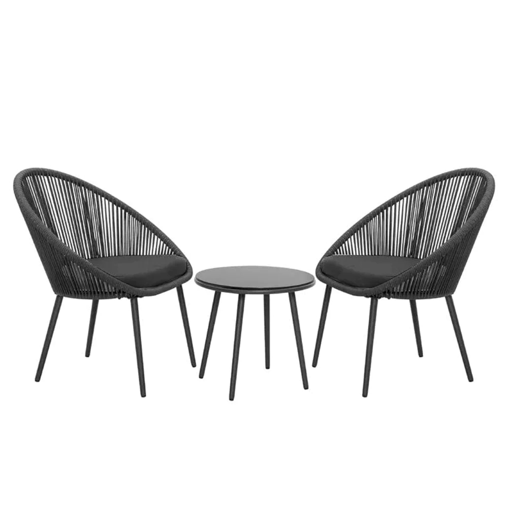 Ez a szett két fonott kialakítású fotelből és egy kisasztalból áll, amely stílusos és tartós megoldást kínál teraszra, erkélyre vagy akár étkeződbe egyaránt. A párnázott, kényelmes ülőfelülettel ellátott székek és az egyszerű, elegáns dizájn biztosítják a komfortos és időjárásálló használatot.