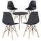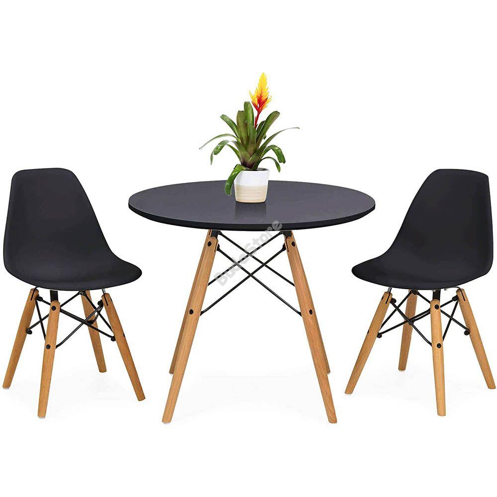 Ez a modern étkezőgarnitúra otthon vagy egy vendéglátó egységben is megállja a helyét. A bútorok tervezése során a műanyag, a fém és a fa is jelentős szerepet kapott, ezek ötvözete igazán különleges megjelenést biztosít. Az étkezőszékekhez egy 60,5 cm átmérőjű asztal is tartozik. A szett fehér, fekete és szürke színben kapható, így mindenki megtalálja a számára megfelelőt.