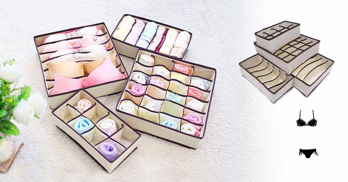 Vess véget az állandó keresgélésnek az alsónemű kupacok között! 4 részes tárolódoboz szettünket akár fiókba, akár szekrénybe is teheted, hogy mindig átlátható legyen a fehérnemű repertoár. A különböző méretű tartókban és rekeszekben zoknikat, melltartókat, alsónadrágokat is tárolhatsz.