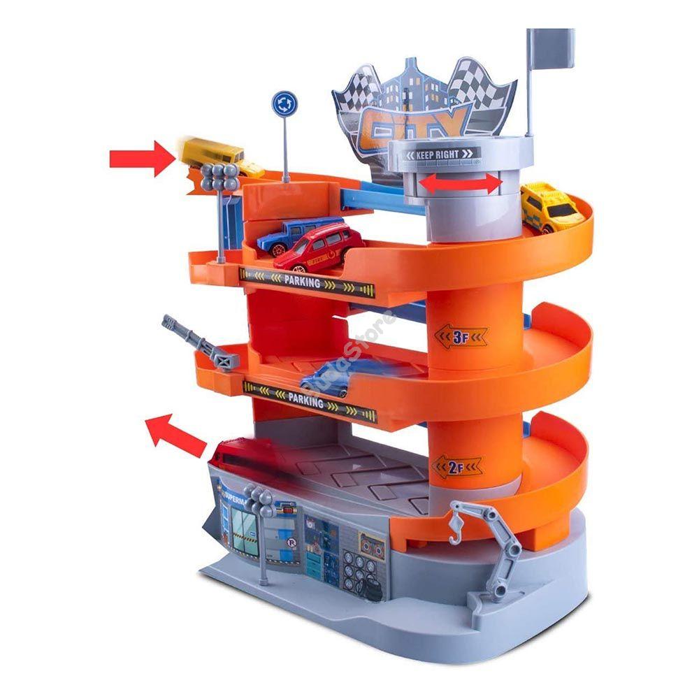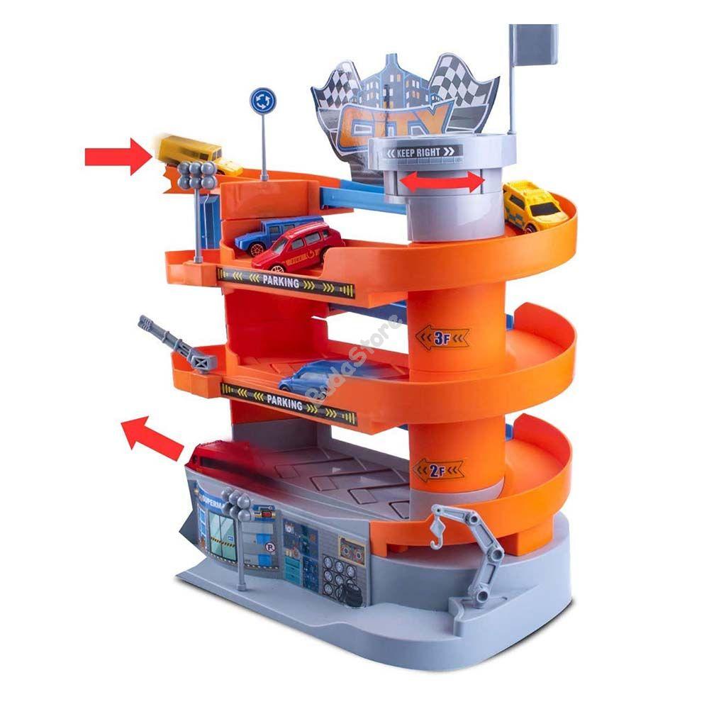 Minden kisfiú álma egy igazi több szintes parkolóház, melyben tárolhatja a szobában hempergő játékautókat és kedvére beállhat egyik helyről a másikra. A kiegészítők segítségével megtanulhatja a közlekedés alapjait, mely táblák hogyan segítik a forgalom haladását és mit kell figyelembe vennie a szabályos közlekedés érdekében. Lifttel felszerelve könnyedén mozgathatja a játékautókat a szintek között.