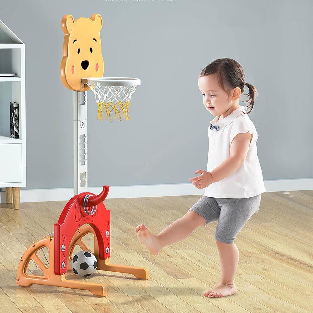 Fejleszd a legkisebbek ügyességét 4 az 1-ben játékszettünk segítségével. A játékállványon található kosárpalánk és focikapu, valamint karika célbadobására és golfozásra is van lehetőség. Állítható magasságú, így gyermeked méretéhez igazíthatod a kosárpalánkot. Fejleszti a koordinációs készségeket és segít gyermekeddel megszerettetni a sportot. Otthoni versenyeket is rendezhettek és csapatban is kipróbálhatja a játék élményét. A játékszett segíthet elsajátítani a megfelelő dobási és rúgási technikákat. Strapabíró műanyagból készült, így hosszútávon is használhatja kül-és beltéren egyaránt.