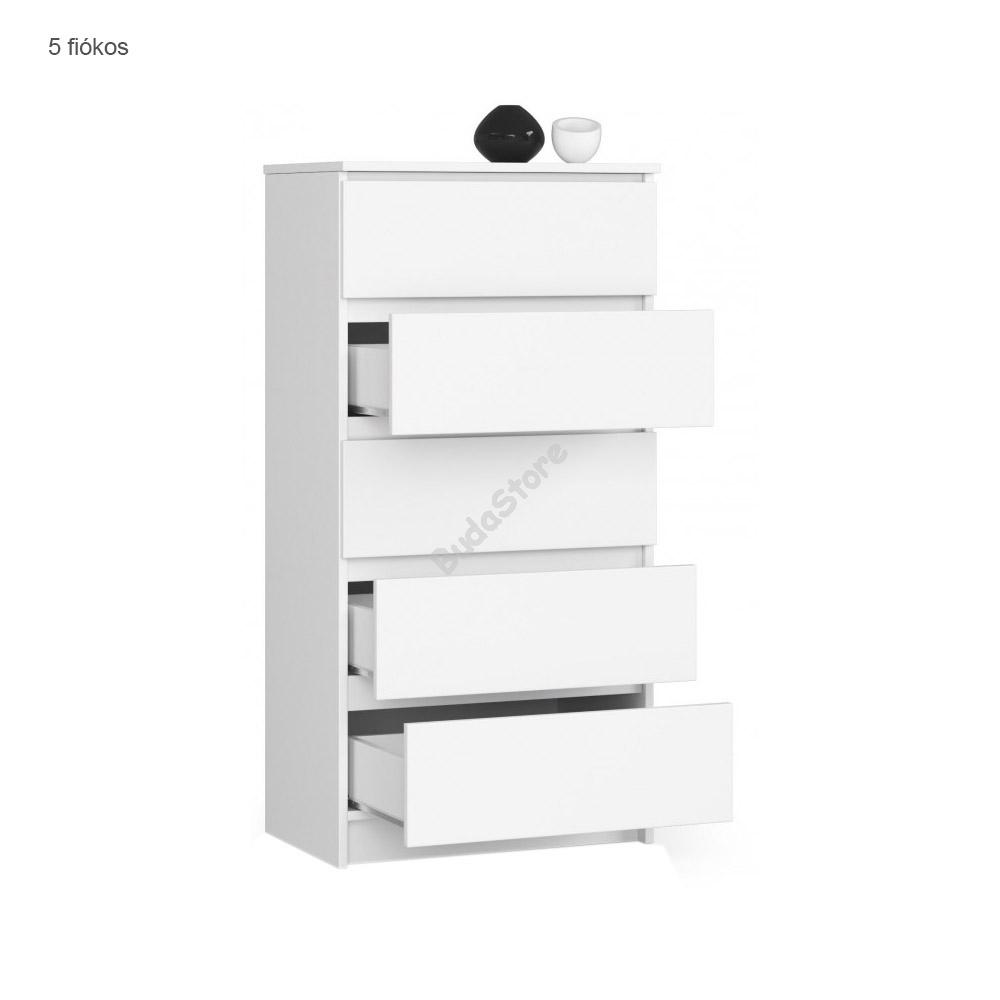 A fiókos komódokat külön-külön és egymással kombinálva, akár egy teljes szettként is érdemes választani. Több mint 8 típusban kapható, méret, fiókok száma és szín szerint megkülönböztetve. A kis méretű 2 fiókos komódot választhatod akár az ágy mellé éjjeliszekrényként funkciónálva, a nagyobb típusokat ruhák, textíliák tárolására, vagy a nappaliba helyezve stílusos tároló és kiegészítő elemként is tökéletesen működik. Néhány típus több színben is elérhető, így könyebben beilleszthetőek a már meglévő bútoraid közé.