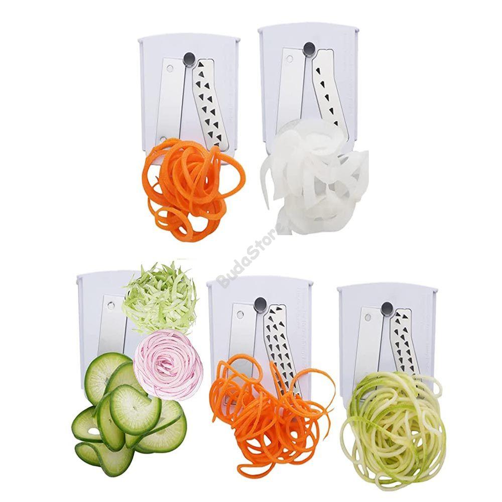 Az 5 az 1-ben zöldség szeletelő a tökéletes megoldás, ha gyorsan és egyszerűen szeretnél gyümölcsöket vagy zöldségeket spirál formára vágni. Hasznos kiegészítő alacsony szénhidráttartalmú, zöldségből készült tészták készítéséhez. Használhatod például alma, hagyma, répa, cukkini, uborka, burgonya, fejes káposzta, saláta vagy cékla szeletelésére. A termék magas minőségű, BPA mentes műanyagból készült. Az erős tapadókorongos lábaknak köszönhetően a szerkezet nem mozdul el a helyéről. Az 5 fajta cserélhető, rozsdamentes acél pengével ellátott tartozéknak köszönhetően különböző méretű és vastagságú spirálokat készíthetünk. Az szeletelési módok a következők: cérnametélt, finom aprítás, durva aprítás, csavart aprítás és lapos aprítás. A konyhai eszköz segítségével maximum 25,5x18 cm-es zöldségeket és gyümölcsöket szeletelhetünk. A cserélhető pengéket