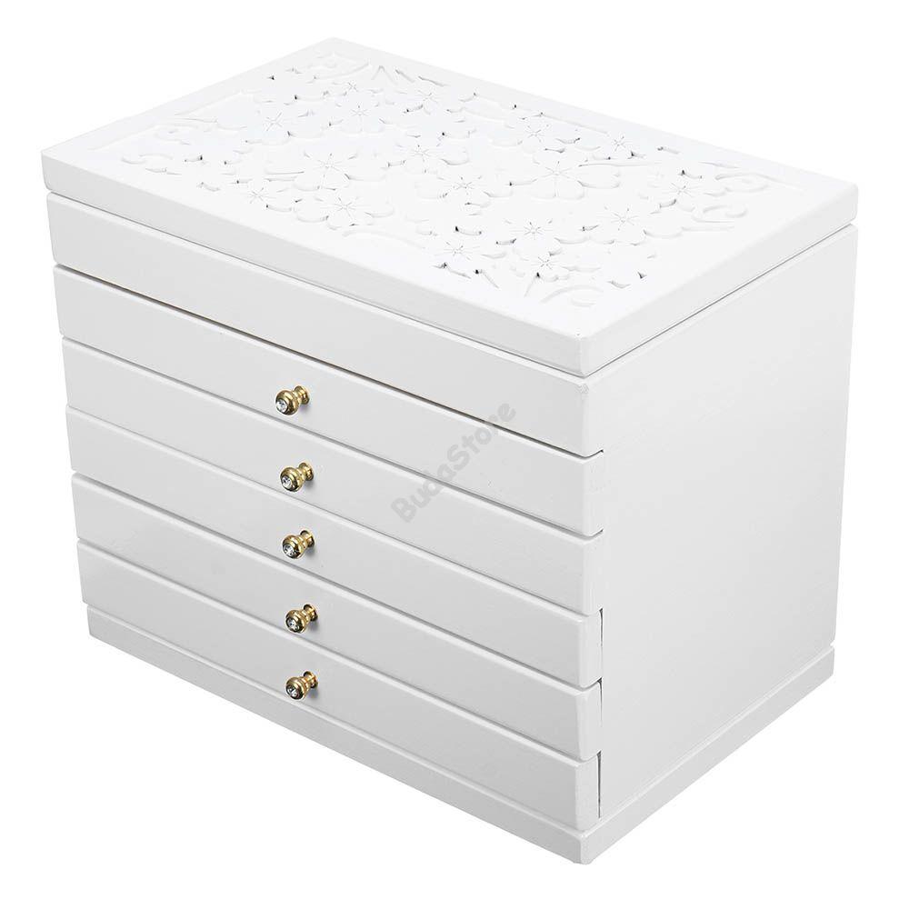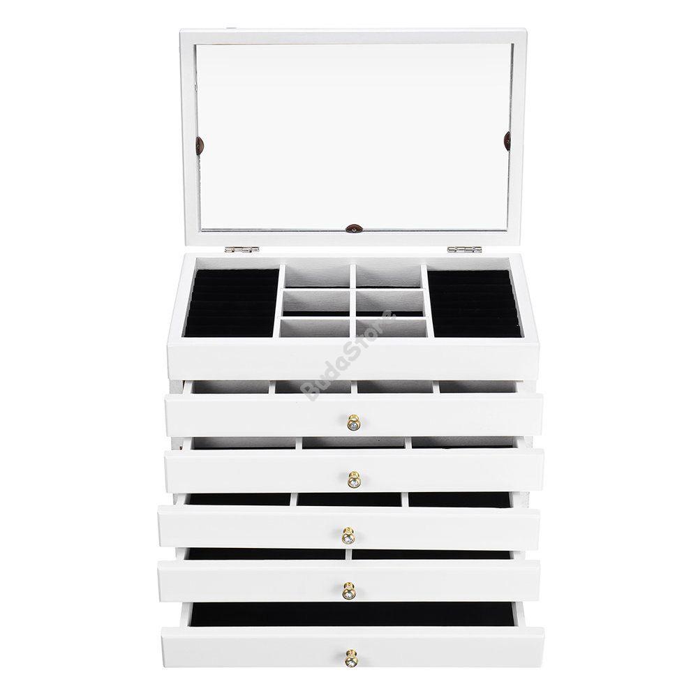 6 rekeszes ékszertartónk biztosan az egyik kedvenced lesz. Praktikus és elegáns, kialakításának köszönhetően 6 db tárolórekesszel, 5 db kihúzható fiókkal és fülbevaló tartóval rendelkezik.