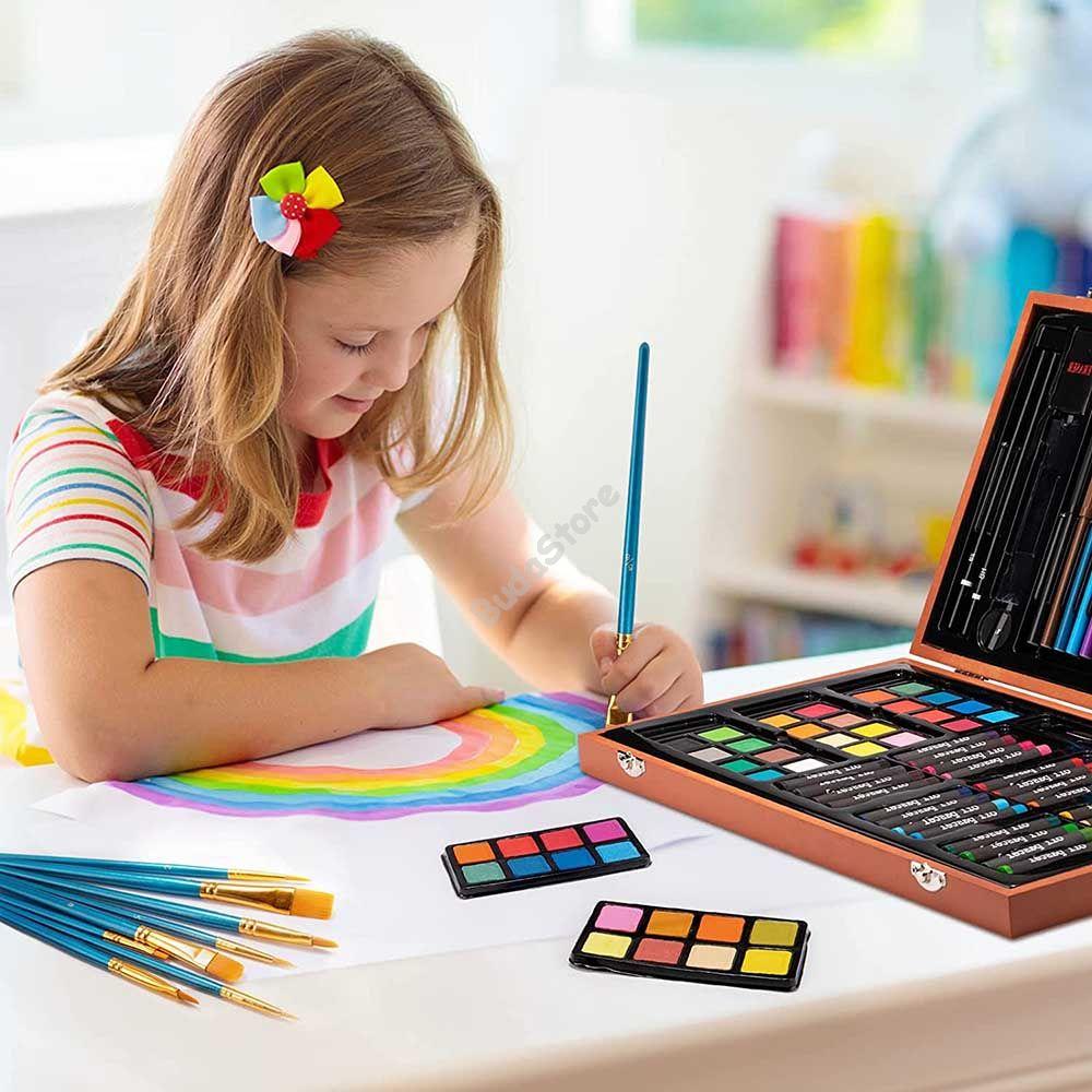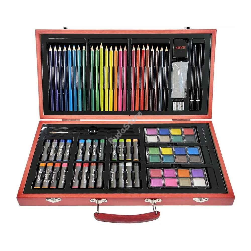 84 db-os rajzkészletünk tökéletes meglepetés lehet kicsi és nagyobb gyerekeknek is, hiszen remek alapkészlet a kis művészeknek. Minden megtalálható benne amivel a gyerekek önfeledten alkothatnak, például ceruzák, festékek, kréták és egyéb kiegészítők. Fa tárolódoboza fogantyúval van ellátva, így a gyerekek magukkal vihetik a készletet akár az iskolába, nyaralásra vagy a nagyihoz is.