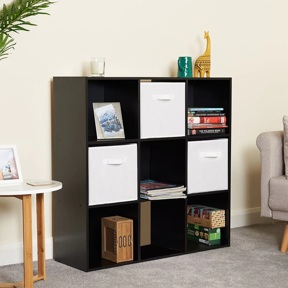 Ez a 9 rekesszel és három kosárral rendelkező tárolópolc praktikus megoldást kínál különféle tárgyak, mint könyvek, játékok és ruhák rendszerezésére. Tartós, könnyen tisztítható és modern vagy klasszikus enteriőrökhöz egyaránt illik. Egyszerűen összeszerelhető és több helyiségben is jól használható.