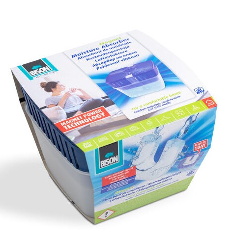 AirMax páramentesítő készülék 450g mágnes alakú tablettával - B13412 4 550 Ft / db Gyártó: EGYÉB Cikkszám: S052_B13412 Vonalkód (EAN13): 8710439272146 AirMax páramentesítő készülék 450g mágnes alakú tablettával, BISON AirMax páramentesítő kivonja a felesleges párát a levegőből az egészséges páratartalom (50-60%) eléréséig. A páramentesítő higiénikus környezetet teremt és véd a felesleges párától. Akár 45 m3 légtér esetén is hosszantartó hatást biztosít. Szagmentes. A patkó alakú tabletta a "mágnes erejével" megköti a levegő páratartalmát, megakadályozzák a páralecsapódást, a penészt, penészfoltosodást, korróziót és a dohos szagot. A speciális tabletta forma nagyobb felületen képes a párát megkötni, így hatékonyabb nedvességgyűjtést biztosít.Mágnes alakú tabletta, amely 40%-kal nagyobb nedvszívó felületet biztosítHosszantartó hatékonyságMegakadályozza a penész kialakulásátMegfelelő nedvességtartalmú, egészséges levegőt biztosítTároló / tartalom:Mágnes alakú tabletta / 450 gAnyag:kalcium - kloridPh-érték:kb. 10 phHatékonyság:Akár 3 hónapon átTömeg / m3:450 g / 45 m3-ig Mennyiség db Nem rendelhető