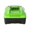 Akkumulátor töltő Greenworks G40C univerzális 40v, gen 2ah 2932507-GW 22 040 Ft / db [2 db 2%] [5 db 3%] [10 db 5%] Gyártó: GREENWORKS Cikkszám: S006_2932507-GW Súly: 1,00 kg Átvétel: Ez a termék boltunkban személyesen is átvehető. A Greenworks G40C egy megbízható és hatékony 40 V-os, 2 Ah-s lítium-ion akkumulátortöltő, amelyet a Greenworks 40 V-os rendszeréhez terveztek. Kompakt kialakításának köszönhetően vízszintesen elhelyezve vagy falra szerelve is használható, így rugalmas megoldást kínál műhelyben vagy garázsban egyaránt. A beépített akkumulátorhűtő rendszer segít fenntartani az optimális töltési hőmérsékletet, ezzel növelve az akkumulátor élettartamát.A LED-es töltési állapotjelző egyértelmű visszajelzést ad az aktuális töltöttségi szintről. A G40B2 (2 Ah) akkumulátor teljes feltöltése körülbelül 60 percet vesz igénybe, míg a G40B4 (4 Ah) akkumulátor 120 perc, a G40B6 (6 Ah) pedig 180 perc alatt tölthető fel. A modern lítium-ion technológia gyors töltést, hosszú üzemidőt és minimális önkisülést biztosít.A G40C töltő kompatibilis a Greenworks 40 V-os család összes akkumulátorával, így egyetlen töltővel több eszköz energiaellátása is megoldható. Praktikus és biztonságos megoldás mindazok számára, akik megbízható töltőt keresnek 40 V-os Greenworks akkumulátoraikhoz. Töltési idő 100% (2Ah):60 perc Kimeneti teljesítmény:90W/2,2A Súly:0,68 kg Gyorstöltés:2 Ah-s akkumulátort 1 óra alatt, egy 4 Ah-s akkumulátort pedig 2 óra alatt tölt fel LED kijelző:jelzi az akkumulátor állapotát Csomagolási méretek:18x13x10cm Típusok: Greenworks: G40C, Mennyiség db Kosárba tesz