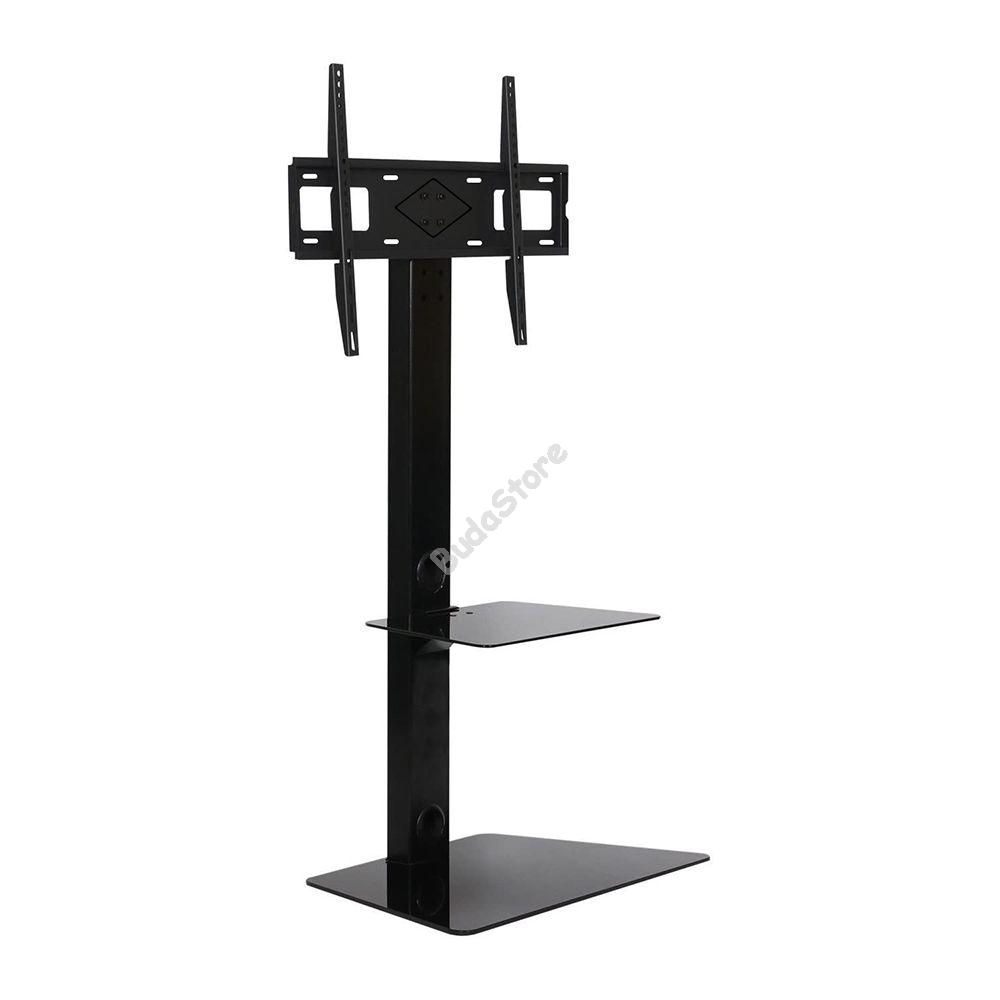 Az álló TV állvány lehetővé teszi, hogy a televíziót a helyiség bármely pontjára elhelyezhessük, ehhez lyukakat sem kell fúrnunk a falba. Az univerzális TV állvány három magassági szintre állítható, így optimális nézési szöget biztosít. Az állványon egy üvegpolcot is találunk, amin DVD lejátszót vagy hangfalat is tárolhatunk. Az egyedi kábelkezelő rendszer elrejti a kábeleket a szem elől, így esztétikusabb látványt nyújt. A fémből készült TV-tartó konzol teherbírása 40 kg.