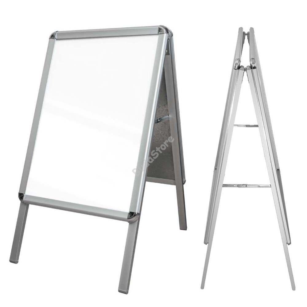 A figyelemfelhívó, alumínium megállítótábla tökéletes választás üzletünk, vállalkozásunk reklámozására, emellett irodában is használható információnyújtás céljából. Átlátszó, műanyag előlapjának köszönhetően belehelyezett plakátunk megfelelő védelmet kap az eső, és a por ellen. 78x58 cm-es plakát helyezhető bele.