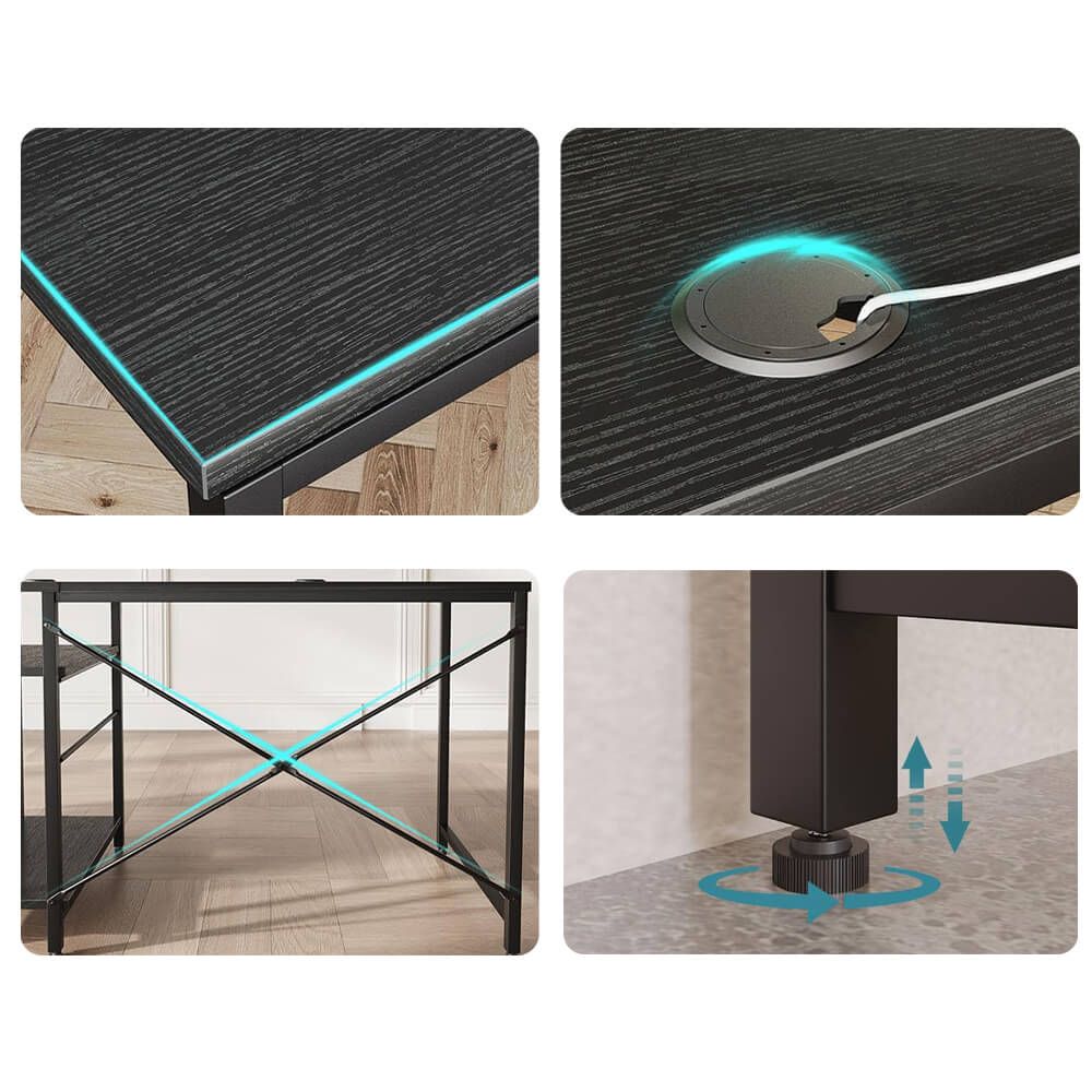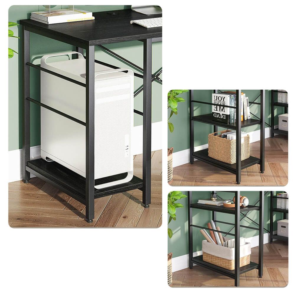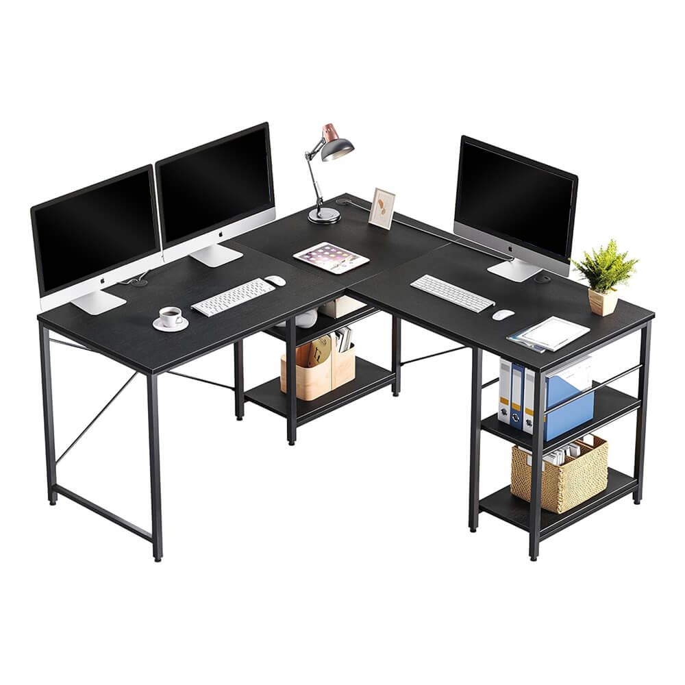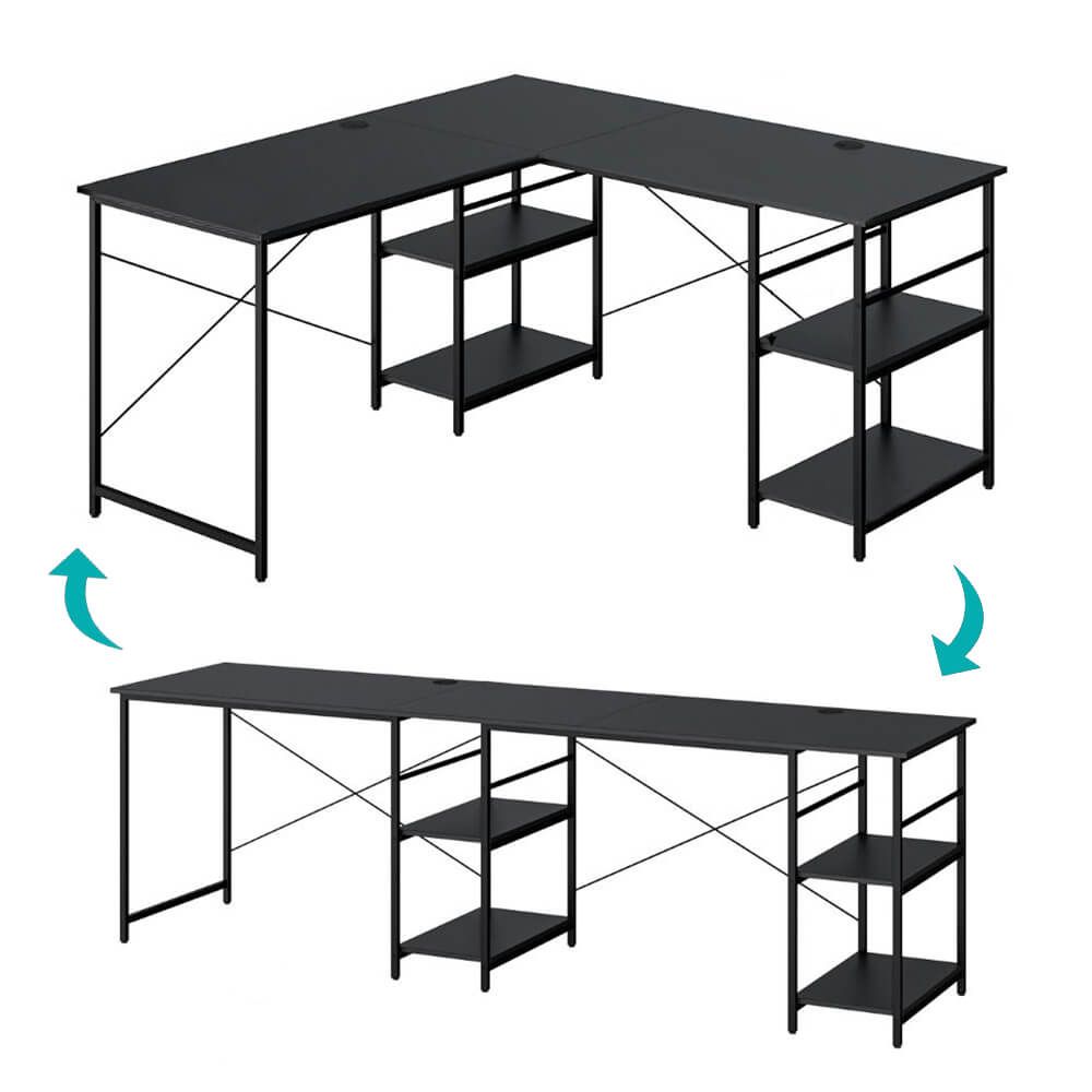 Átalakítható L-alakú íróasztal polcokkal fekete HOP1001748-1