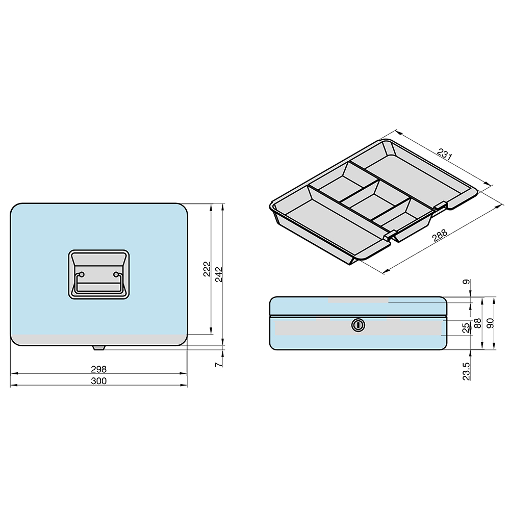 Basi GK 10XL Fekete pénzkazetta érmetartóval B210004001100 7 030 Ft / db [2 db 2%] [5 db 3%] [10 db 5%] Gyártó: Basi Cikkszám: S005_B210004001100 Vonalkód (EAN13): 4026434139402 Súly: 1,81 kg Átvétel: Ez a termék boltunkban személyesen is átvehető. Basi GK 10XL Fekete pénzkazetta érmetartóval B210004001100acéllemez pénzkazettasüllyesztett fém fogantyú5 rekeszes műanyag aprópénztartóalatta hely bankjegyeknekkrómozott lamellás zárkettő darab kulccsaltöbbféle méretben és színben áruljukTulajdonságokZárszerkezet:KulcsosMagasság:90 mmSzélesség:300 mmMélység:240 mmSzín:FeketeTömeg:1,812 kg Mennyiség db Kosárba tesz