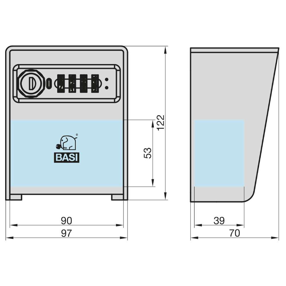 Basi SSZ 350 kulcsszéf vésznyitó zárral B21010015 25 300 Ft / db [2 db 2%] [5 db 3%] [10 db 5%] Gyártó: Basi Cikkszám: S005_B21010015 Vonalkód (EAN13): 4026434466027 Súly: 1,31 kg Átvétel: Ez a termék boltunkban személyesen is átvehető. Basi SSZ 350 kulcsszéf vésznyitó zárral B21010015időjárásálló kulcstároló széfbeltéri és kültéri használatra3 mm-es rozsdamentes acél testmasszív lefelé nyíló ajtó2 db fix kulcsakasztókrómozott 4 tárcsás számzár10.000 elméleti kódvariációkét rögzítő furatok hátrafelévésznyitó kulccsalrögzítő csavarokkal áruljukTulajdonságokZárszerkezet:SzámzárasMagasság:122 mmSzélesség:97 mmMélység:70 mmAkasztók száma:2 dbAnyag:RozsdamentesTömeg:1,306 kg Mennyiség db Kosárba tesz