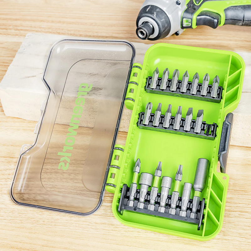 Behajtó készlet Greenworks APT-20IRDK-GW 20 részes 2944007-GW 7 930 Ft / db [2 db 2%] [5 db 3%] [10 db 5%] Gyártó: GREENWORKS Cikkszám: S006_2944007-GW Átvétel: Ez a termék boltunkban személyesen is átvehető. Ez a 20 darabos Pick&Click bitkészlet praktikus és kompakt megoldást kínál a mindennapi csavarozási feladatokhoz. A gondosan összeválogatott bitek lehetővé teszik a pontos és hatékony munkavégzést otthon, a műhelyben vagy akár a kertben is. A Pick&Click rendszernek köszönhetően a bitek egyszerűen cserélhetők és rendszerezhetők, így mindig kéznél van a megfelelő darab.A készlet kompatibilis minden hagyományos fúrógéppel és akkus csavarhúzóval, így univerzálisan használható. A tartós kialakítás hosszú élettartamot és megbízható teljesítményt biztosít rendszeres használat mellett is.A Greenworks termékkínálatában számos további, kertbe és műhelybe szánt eszközt talál. Fedezze fel a minőségi szerszámok széles választékát, és válassza a hatékony, megbízható megoldásokat minden projekthez. Készlet:20 db-os Csomagolás méret:25.5 x 14.5 x 4 cm Típusok: Greenworks: APT-20IRDK-GW, Mennyiség db Kosárba tesz