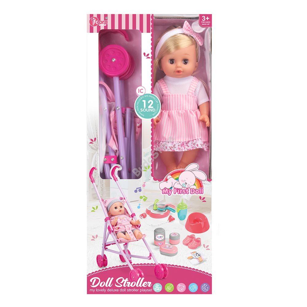 Beszélő játékbaba babakocsival és kiegészítőkkel HOP1001410