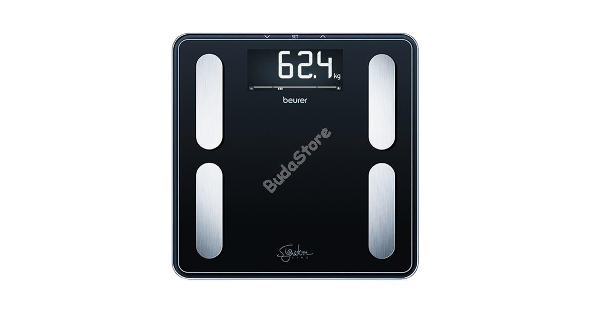 Beurer BF 400 Signature Line diagnosztikai mérleg 200kg terhelhetőség fekete BF400 15 660 Ft / db [2 db 2%] [5 db 3%] [10 db 5%] Gyártó: BEURER Cikkszám: S018_BF 400 fekete Vonalkód (EAN13): 4211125735746 Súly: 2,00 kg Átvétel: Ez a termék boltunkban személyesen is átvehető. Beurer BF 400 Signature Line diagnosztikai mérleg 200kg terhelhetőség fekete BF400 Súly, testzsír, testvíz, izomarány, csonttömeg, AMR/BMR kalória kijelzés Elektródák szálmintás, rozsdamentes acélból 5 aktivitási fok Felhasználói memóriahelyek száma: 10 Átállítás kg, lb, st között Quick Start gyorsindítás Kikapcsoló automatika, túlterhelés kijelzése Teherbírás: 200 kg / beosztás: 100 g / 0,1% / 1 kcal Méret: 31 x 31 x 2,8 cm Fellépő felület biztonsági üvegből: 31 x 31 cm Számjegyek mérete: 35 mm 3 x 1,5 V AAA elemmel Mennyiség db Kosárba tesz