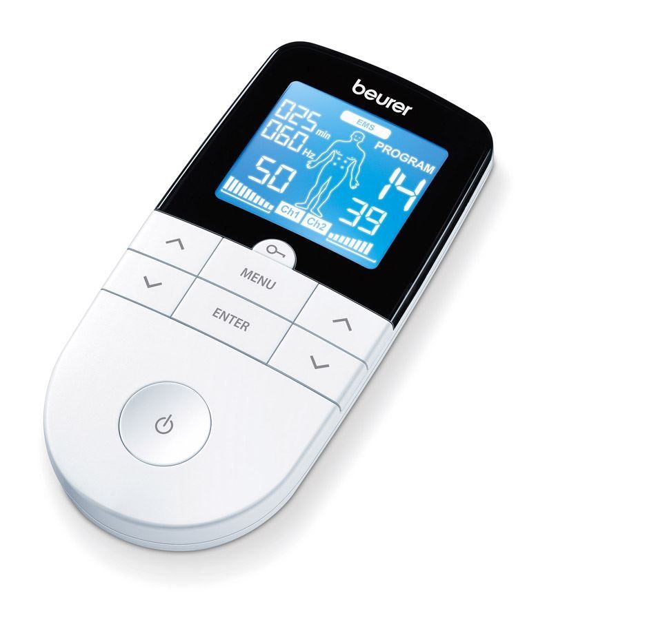 BEURER EM 49 TENS/EMS készülék EM49 21 900 Ft / db [2 db 2%] [5 db 3%] [10 db 5%] Gyártó: BEURER Cikkszám: S018_EM 49 Vonalkód (EAN13): 4211125662059 Súly: 0,50 kg Átvétel: Ez a termék boltunkban személyesen is átvehető. BEURER EM 49 TENS/EMS készülék EM49 - 4 öntapadó gél elektróda mellékelve (45 x 45 mm) - 2 külön szabályozható csatorna - 64 előre programozott alkalmazás - 6 személyre szabható program: Programozható frekvencia - Beállítható intenzitás - Visszaszámláló óra - Biztonsági kikapcsolás - Doctor‘s Function* - Gyógyászati termék - Inverz LCD kék háttérvilágítással - 3 x 1,5V AAA elemmel Mennyiség db Kosárba tesz