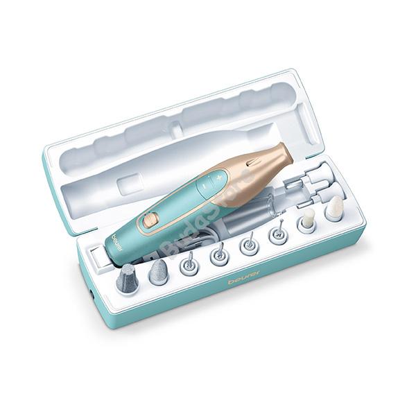 BEURER MP 84 manikűr- pedikűrkészlet MP84 36 130 Ft / db [2 db 2%] [5 db 3%] [10 db 5%] Gyártó: BEURER Cikkszám: S018_MP84 Vonalkód (EAN13): 4211125570026 Súly: 1,00 kg Átvétel: Ez a termék boltunkban személyesen is átvehető. BEURER MP 84 manikűr- pedikűrkészlet MP84 Erőteljes akkumulátoros készülék a rugalmas, kábelmentes használathoz Az ápolt kezekért és lábakért Töltő- és tárolótokkal 3 sebességfokozat, jobbra/balra forgás 10 db minőségi feltéttel: Zafír kúp és filc kúp Zafír korong, durva és finom Hengeres reszelő Körömreszelő benőtt körömhöz Zafír reszelő és körömreszelő Zafír bőrkeményedés-reszelő Bőrkeményedés-reszelő kristályhomokból Micro USB csatlakozóval Automatikus kikapcsolás 20 perc után Az ergonomikus kialakítás megakadályozza a lecsúszást a kezelés alatt LED lámpa A feltéteket cukorbetegek is használhatják Védősapkával a körömreszelékhez Fordulatszám: 3200/3800/4400 ford./perc ±15% Nagy teljesítményű lítiumion-akkumulátor Akkumulátoros üzem: kb. 2 óra üzemidő Töltési idő: kb. 3 óra Töltő- és tárolótokkal 3 év garancia Mennyiség db Kosárba tesz