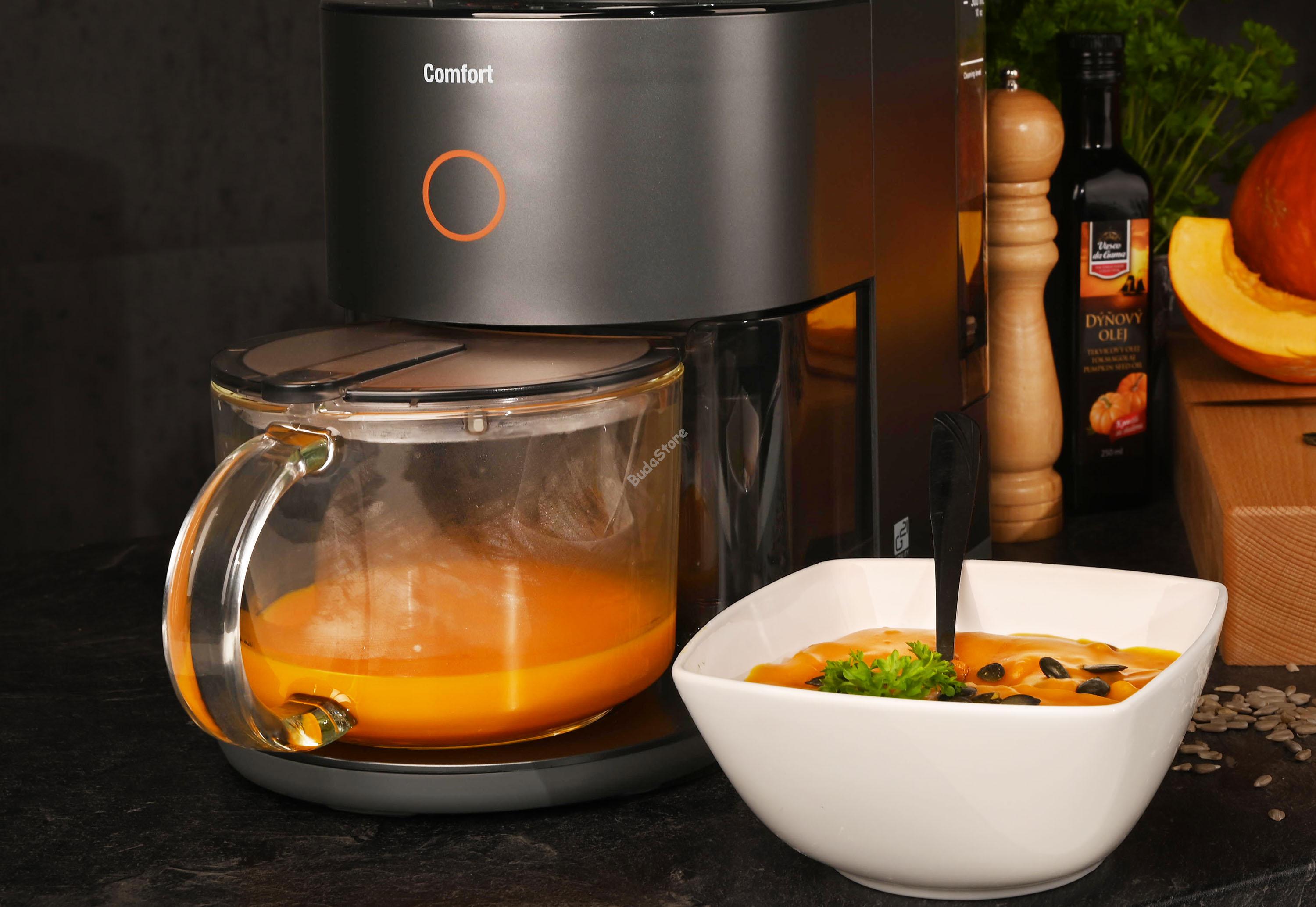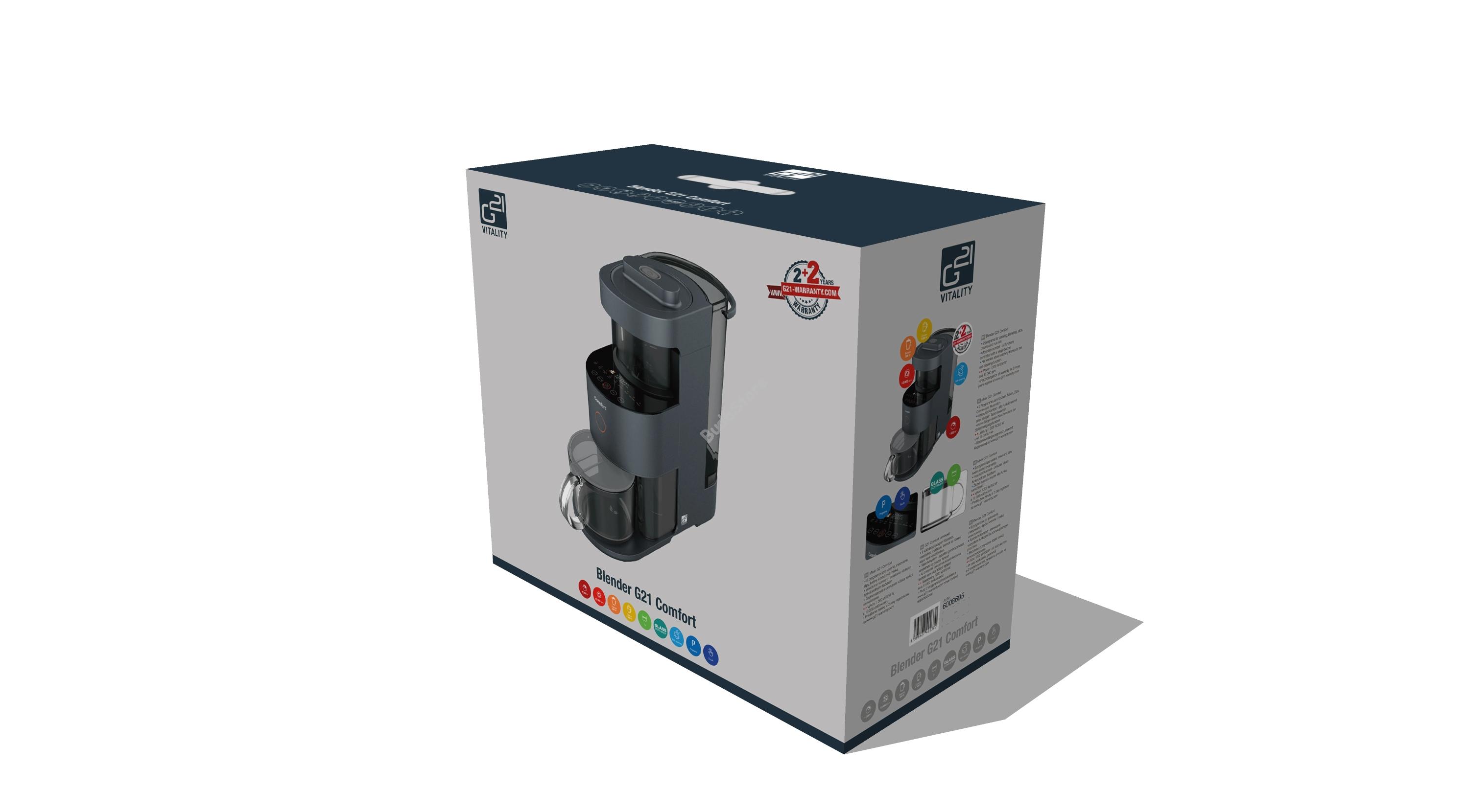 Blender G21 Comfort Graphite Black turmixgép 6008695 60 690 Ft / db [2 db 2%] [5 db 3%] [10 db 5%] Gyártó: G21 Cikkszám: S100_6008695 Vonalkód (EAN13): 8595627422370 Súly: 10,00 kg Blender G21 Comfort Graphite Black turmixgép 6008695 Minden turmixgépnek más az erős oldala - az egyiknek a leves, a másiknak a turmix. A G21 Comfort mindenre képes, győződj meg róla Te is! A G21 Comfort méltó a nevéhez! A termék leírása Leves, tejszín, vagy koktél, amit csak elképzel A nagy teljesítményű G21 Comfort multifunkciós mixer tökéletes segítőtárs. Mindenre képes, ami csak az eszébe jut. Mixel. Levest és dressingeket készít. Pillanatok alatt mandulatejet csinál. Nem jelent gondot egy milk shake vagy egy frissítő limonádé sem. Az ínycsiklandó pesztónak pedig egyszerűen nem lehet ellenállni. Egyedi és sokoldalú Önállósága miatt kivételes. Nem találsz még egy ilyen készüléket a piacon. Minden használat után elmossa és megtisztítja magát, így ezzel egyáltalán nem kell törődnie. Elkészítí az általad kiválasztott ételt vagy italt, majd kitakarítja magát, amíg éppen reggelizel, ebédelsz vagy kirándulsz. A készülék a tisztítási program befejezése után készen áll a használatra. Blender G21 Comfort Graphite Black a hokkaido tök alapanyagokkal a fa deszkán.. A Blender G21 Comfort 9 fajta programjának köszönhetően, egy gép vásárlásával több konyhai robotot is helyettesít. Növényi tej készítése, leves főzés, vagy smoothie keverése. És még sorolhatnánk mennyi mindent tud. Növényi tej készítése, leves főzése, szósz- vagy gyümölcslé készítése. De ennél sokkal több mindent is készíthetsz benne. Főzőprogramok Gyors leves vagy szósz - tegye bele a hozzávalókat, a mixer betölti a szükséges vizet a tartályból, majd elkezdi a főzést/turmixolást. Választ ki a létszámnak megfelelő mennyiséget (0,3-0,6 l) és 10 perc múlva kész is a forró leves. Sűrű forró ital - próbáld kia finom szójatejet datolyával. 0,3 és 1 liter közötti mennyiséget adagolhatsz. Az elkészítése maximum 22 percet vesz igénybe. Mandulatej - vízben (0,3-1 l) felforralja a mandulát, összekeveri és kész is. Így mindig lesz otthon mandulatej. Az előkészítés maximum 34 percet vesz igénybe. Sűrű leves - kiadós leves ebédre vagy vacsorára? Hagyd dolgozni a Comfort-ot 35 percig, majd ülj le és élvezd a mennyei levest. Ezalatt a készülék ki is tisztítja magát, és felkészül a reggeli gyümölcslé vagy turmix készítésére. A leves készítéséhez a víz mennyisége 06-1 liter között választható. Krémek és mártogatósok - ha eddig a hosszadalmas és bonyolult elkészítés vette el a kedvedet attól, hogy új ételeket próbálj ki, vagy épp elkészítsd a kedvenceidet, akkor itt az idő. Az elkészítés maximum 34 percet vesz igénybe. Az adagok számától függően 0,3-1 liter víz hozzáadható a mártogatós elkészítéséhez. Hideg programok Gyümölcslé - 4 perccel a gyümölcsök vagy zöldségek vízzel való összekeverése után azonnal megtöltheti a poharát vitaminokkal és egészséges rostokkal teli lével. Milkshake - mindössze két perc alatt gyönyörűen habos koktélt készít tejből és gyümölcsből. Tisztítás, sterilizálás gyors tisztítás - minden használat után automatikusan elindul sterilizálás forró gőzzel - a tökéletes tisztaság Igazi kényelem A kívánt program kiválasztásához elég csak egy gombnyomás és a G21 Comfort a többiről gondoskodik. Válassza ki a kívánt programot, a munkát és a mértékeket pedig bízza a legjobb konyhai segítőre, 1000 milliliteres tartájának köszönhetően maga állítja be a szükséges víz mennyiségét. Intelligens funkciók a könnyebb kezelés érdekében A kedvenci ételeit bármikor elkészítheti, kedvenc konyhai gépünket „Késleltetett indítás” funkcióval és egyéni sebesség beállítási lehetőségével láttuk el. Így az előkészítést az Ön igényeihez igazíthatja. Hokkaido krémleves készítése a G21 Comfort mixerrel. Nem csak, hogy rá lehet bízni a munkát, de öntisztító is És ezért szeretjük őt annyira! A keverési folyamat befejezése után elindítja az öntisztító funkciót. De ez még nem minden. Annak érdekében, hogy az elkészített finomságok még egészségesebbek legyenek egy „Sterilizáló” programmal láttuk el a G21 Comfort mixert, ennek köszönhetően sterilizálja az edényt és annak belsejét Blender G21 Comfort eper koktél készítése közben Meghosszabbított garancia 2+2 év A termék minőségére 4 év garanciát vállalunk. A 2 éves jótállási időszakot a http://g21-warranty.com oldalon regisztrálva további 2 évre hosszabbíthatja meg. Használja ki ezt a lehetőséget és regisztráljon a vásárlás után. A 2+2 év kiterjesztett garancia megtérül! Meghosszabbított garancia 2 + 2 év, kifizetődik! Fő előnyei Időmegtakarítás Nagy teljesítmény, kiváló paraméterek 9 program, beleértve az öntisztító funkciót is Univerzális használat Üveg edény Meghosszabbított garancia 2 + 2 év Specifikáció Teljesítmény: 1200 W Motorteljesítmény: 350 W Fordulatszám: 13 000 ford./perc Fizikai tulajdonságok Az edény térfogata Víztartály: 1000 ml Az ételtartály: 1200 ml Anyaga Keverőedény: üveg Ételtartály: üveg Víztartály: műanyag Hulladéktartály: műanyag Mérőpohár: műanyag Egyéb Szín: grafitfekete Súly: 9 kg Méretek (Sz x Ma x Mé): 19 x 46 x 39 mm Csomagolás súlya: 9,8 kg Csomagolási méretek (Sz x Ma x Mé): 53 x 27 x 47 cm Csomagolás tartalma Blender G21 Comfort Graphite Black Tisztítókefe 120 ml-es mérőpohár Paraméterek Fordulatszám (1/min) 13000 Szín Fekete Súly (kg) 9 Kijelző Nem Méretek sz x ma x mé (cm) 19 x 46 x 39 Turmixgép, őrlő, robotgép Asztali mixerek Teljesítmény (W)1200 , 1501 - 2000W BPA free Igen Meghosszab