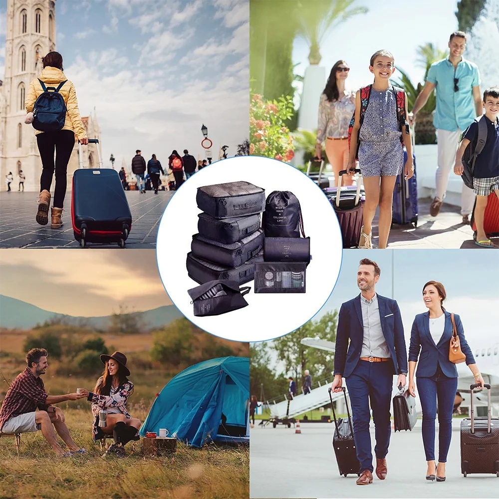 A csomag nyolc különböző méretű és típusú rendszerezőt tartalmaz, melyek bármilyen bőröndbe illeszkednek, így könnyen alkalmazkodnak az utazási igényeidhez.