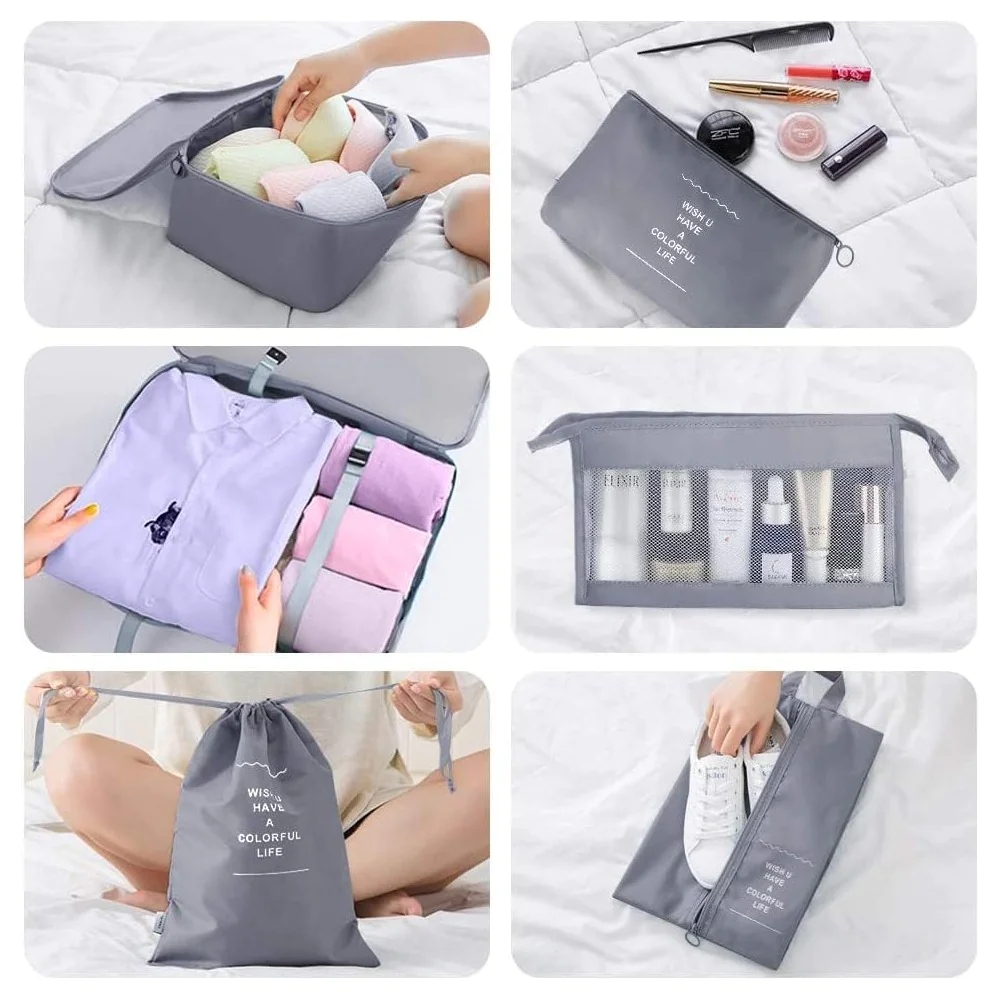 A praktikus 8 darabos bőröndrendszerező szett minden szükséges kiegészítőt biztosít, hogy ruháid és holmid rendezetten és védve maradjanak az utazás során. A különböző méretű rendszerezők könnyen illeszkednek bármilyen bőröndbe, és tisztítható anyagból készültek, így higiénikusak és tartósak.