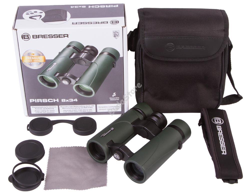 Bresser Pirsch 8x34 kétszemes távcső 73033 96 990 Ft / db [2 db 2%] [5 db 3%] [10 db 5%] Gyártó: Bresser Cikkszám: S101_73033 Súly: 0,82 kg Átvétel: Ez a termék boltunkban személyesen is átvehető. These premium 'allround' binoculars of the Bresser Pirsch series is for every application range the right one, whether on vacation, journey, while hiking or hunting. The binoculars are armed with the newest phase coating and let the picture shine more clear in contrast and high-definition, reinforced by fully-multicoated. Because of BaK-4 glass material you get a bright and clear picture. Based on twist-up eyecups spectacle wearers can also enjoy the full field of view. They are adjustable in 2 steps and also support the view without glasses. The Bresser Pirsch Binoculars have a rubber armored body for solid grip. All Pirsch models are armed with a broad and very comfortable neckstrap. To make the package complete these binoculars are waterproof and nitrogen purged to prevent them against fogging. Features: Compact and versatile binoculars High quality phase coating for bright and more high-contrast images Waterproof and nitrogen purged to prevent fogging Rubberized housing Ideal also for spectacle wearers +/- 4 diopter The kit includes: Binoculars Nylon case with shoulder strap and belt loop Broad, padded carrying strap Protective objective lens caps Protective eyepiece caps Lens cloth Manual MárkaBresser GmbH, NémetországSzavatosság2 évEAN4007922040776A csomag méretei (HxSzxM):18x18x7 cmSzállítási súly0.82 kgPrizmatípusfáziskorrekciós tetőélNagyítás foka, x8Objektívlencse átmérője (rekesznyílás), mm34Optikai elemek anyagaBaK-4Lencse bevonatateljesen és több rétegben bevonatolt, ultimate Reflection bevonat, zöldSzemtávolság, mm17.15Szürkületi érték16.49Relatív fényesség18.06Látómező, °6.97Látómező, m/1000 m122Közelfókusz, m4Szemlencse dioptriabeállítás, dioptria±4Pupillatávolság (PD), mm56 — 76FókuszálásközpontiSzemkagylóktekerhetőVázfém, gumírozott, műanyagVáz töltőanyaganemesgázVízállóyesNedvességállóságyesA nedvesség/víz elleni védelem mértékemerülési mélység legfeljebb 1 mÜzemi hőmérséklet-tartomány, °C-20 — 50MéretkompaktHasználatutazáshoz, MadármegfigyelésTok/doboz/táska a készletbentokSzemüveggel használhatóyes Mennyiség db Kosárba tesz