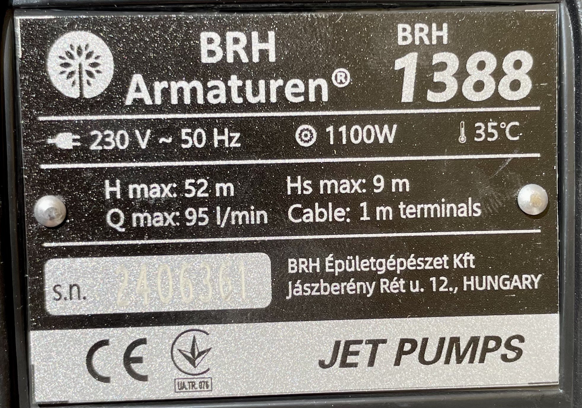 BRH JET típusú, önfelszívó locsolószivattyú, telj.: 1100W, csatl.:5/4'-1' - BRH-1388 56 920 Ft / db [2 db 2%] [5 db 3%] [10 db 5%] Gyártó: BRH Cikkszám: S052_BRH-1388 Vonalkód (EAN13): 2000000713861 Súly: 22,70 kg BRH JET típusú, önfelszívó locsolószivattyú, telj.: 1100W, csatl.?/4"-1", Hmax:52m, Qmax: 95l/min Mennyiség db Kosárba tesz