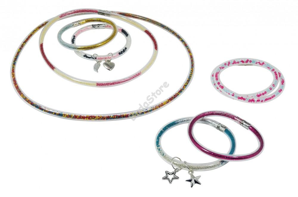 BUKI Csillogó ékszer készítő 4 990 Ft / db [2 db 2%] [5 db 3%] [10 db 5%] Gyártó: BUKI Cikkszám: S140_BUKIBE105 Vonalkód (EAN13): 3700802101390 Súly: 0,22 kg Válaszd ki a gyöngyöket és a csillámport, keverd össze a színeket és töltsd bele a karkötőkbe! Máris hordhatod a gyönyörű, divatos kiegészítőidet!Tartalma: válogatott mikrogyöngyök (több mint 34 g), válogatott gyöngyök (több mint 3,5 g), 3 tubus csillám (rózsaszín, ezüst, arany), 7 összekötő kapocs, 4 charm, 4 fémkarika, műanyag cső (220 cm), 1 tölcsér az összeállításhoz, színes használati utasítás.A doboz mérete: 20*5*28 cm.Márka: Buki FranceAjánlott életkor: 8+ Jellemzők Korcsoport: 8 éves kortól Kinek ajánljuk: Lányoknak Mennyiség db Kosárba tesz
