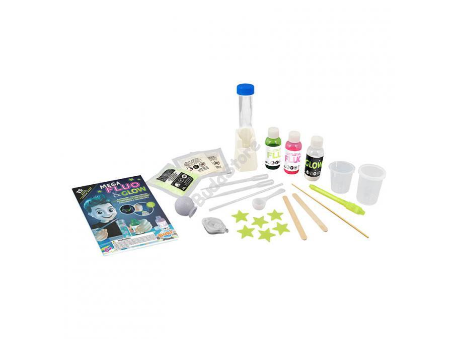 BUKI Mega foszforeszkáló és világító készlet 15 kísérlet 12 290 Ft / db [2 db 2%] [5 db 3%] [10 db 5%] Gyártó: BUKI Cikkszám: S140_BUKI2162 Vonalkód (EAN13): 3700802102854 Súly: 0,62 kg Fedezz fel 15 olyan tevékenységet, amelyet sötétben is kipróbálhatsz. Gyújtsd meg az UV-lámpát, hogy megcsodálhasd a fluoreszkáló színeket. Készíts nyálkát és foszforeszkáló ugráló labdákat, amelyek világítanak az éjszakában.Tartalma: 1 kémcső, tartó, 1 UV-lámpa, 2 fa pálca, 1 keverő pálca, 2 pipetta, 1 szívószál, 1 mérőpohár (50 ml), 1 tartály fedővel, 1 mérőkanál, rózsaszín fluoreszkáló színezék (50 ml), zöld fluoreszkáló színezék (50 ml), foszforeszkáló por (60 g), foszforeszkáló csillagok, Slime por (2 tasak), pattogó labda elkészítéséhez szükséges por (1 tasak), 1 golyóforma, UV toll.Egyes tevékenységekhez porcukor, növényi olaj, tej vagy mosogatószer szükséges, amelyek nem tartoznak a csomaghoz.Ajánlott életkor: 8+Márka: Buki France Jellemzők Korcsoport: 8 éves kortól Kinek ajánljuk: Lányoknak és fiúknak Mennyiség db Kosárba tesz