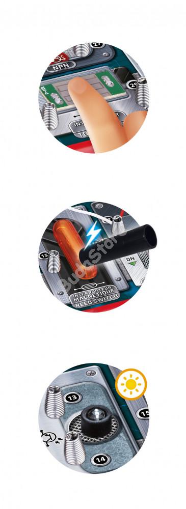 BUKI Tudományos készlet - Elektronika 50 kísérlet 17 490 Ft / db [2 db 2%] [5 db 3%] [10 db 5%] Gyártó: BUKI Cikkszám: S140_BUKI7160 Vonalkód (EAN13): 3700802101833 Súly: 0,79 kg Ezzel a készlettel igazi villamosmérnökké válhatsz! Szereld össze az alkatrészeket és több, mint 50 elektronikus áramkörös kísérletet végezhetsz: riasztó, hangeffektek, sziréna, digitális kijelzés, stb. Az alkatrészeket nem kell forrasztani, kialakításuk gyerekbarát.Kísérletek: LED fény, fényérzékelés, mágneses és érintésérzékeny kapcsolók, tranzisztorok, ellenállások, hangszóró, forgó fény, stb.Fedezd fel mind az 50 kísérletet!A játék színesen illusztrált füzetet tartalmaz, valamint a QR kóddal leolvasható magyar nyelvű leírás a doboz elején található.A játék működéséhez 2 db AA elem szükséges, melyet a csomagolás nem tartalmaz.Márka: Buki FranceAjánlott életkor: 8+ Jellemzők Korcsoport: 8 éves kortól Kinek ajánljuk: Fiúknak Mennyiség db Kosárba tesz