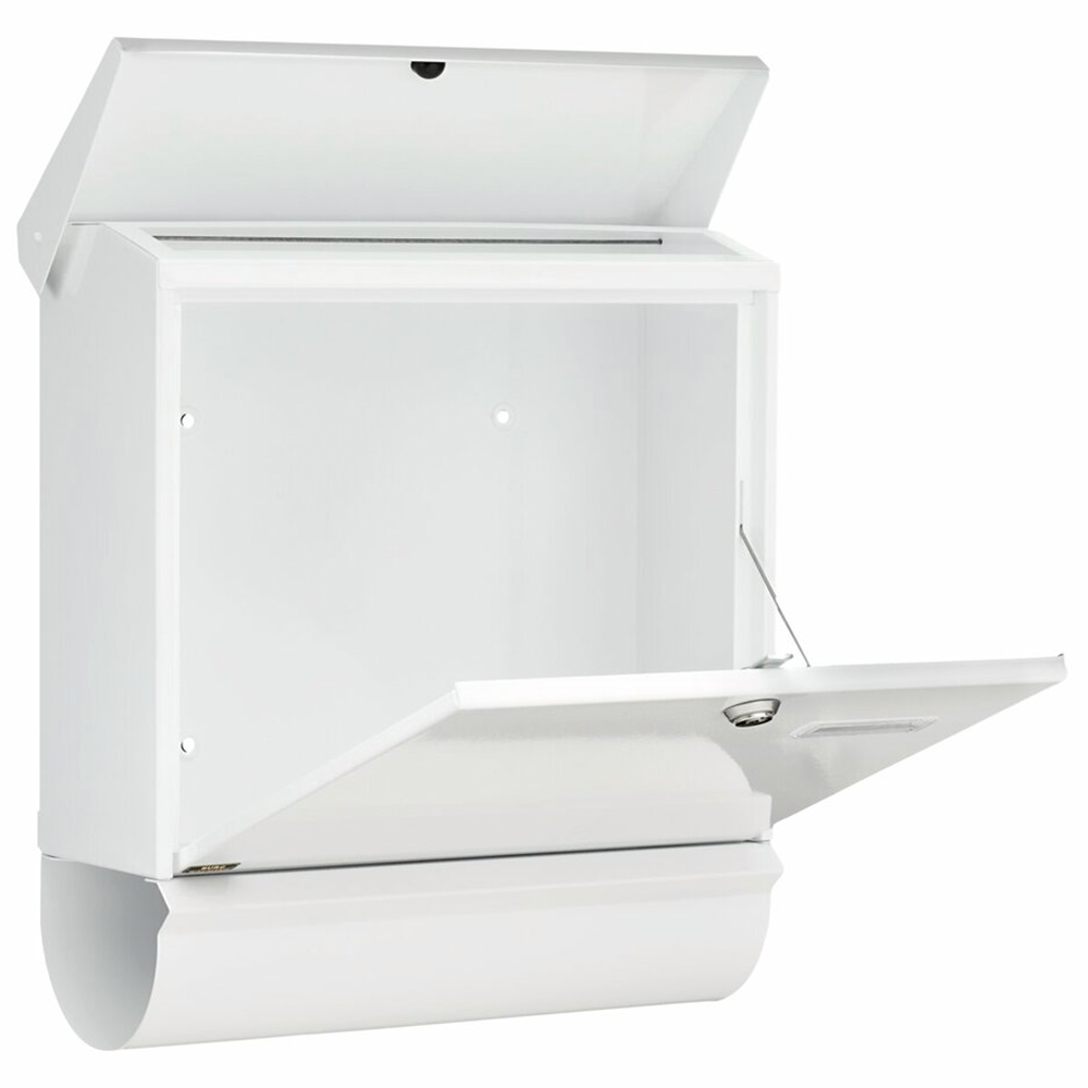BURG WACHTER Comfort Set 91300 postaláda újságtartóval fehér 41 580 Ft / db [2 db 2%] [5 db 3%] [10 db 5%] Gyártó: BURG WACHTER Cikkszám: S005_BW32670 Vonalkód (EAN13): 4003482326701 Súly: 4,00 kg Átvétel: Ez a termék boltunkban személyesen is átvehető. Burg Wachter ComfortSet 91300 W Fehér nagyméretű kerítésen kívüli postaláda újságtartóval BW32670 kapun, kerítésen kívülre szerelhető postaláda egybeépített, mindkét végén nyitott újságtartóval anyaga horganyzott acéllemez műanyag porszórással színezett UV és időjárásálló lakkozás elegáns megjelenésű kültéri postaláda felső bedobónyílás felhajtható tetővel biztonságos ürítés érdekében nyitáshatárolóval ellátott lefelé nyíló ajtóval EN 13724 szabványnak megfelelő levélszekrény nagy befogadóképesség krómozott 5 csapos postaláda zár kettő darab kulccsal műanyag névtartó rögzítő csavarokkal nyerskulcs típusa: 65RTulajdonságokMagasság:440 mmSzélesség:380 mmMélység:148 mmAjtó magasság:32 mmAjtó szélesség:332 mmAnyag:HorganyzottSzín:FehérTömeg:4 kg Mennyiség db Kosárba tesz
