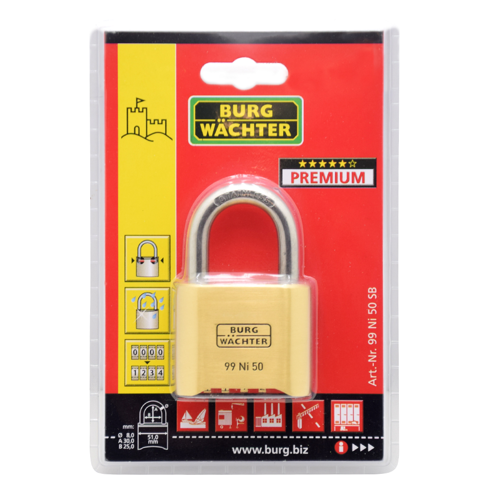 BURG WACHTER rozsdamentes biztonsági számzáras lakat No. 99 11 710 Ft / db [2 db 2%] [5 db 3%] [10 db 5%] Gyártó: BURG WACHTER Cikkszám: S005_BW37661 Vonalkód (EAN13): 4003482376614 Súly: 0,30 kg Átvétel: Ez a termék boltunkban személyesen is átvehető. Burg Wachter No 99 Ni 50 SB rozsdamentes biztonsági számzáras lakat BW37661 tengervízálló számzáras lakat masszív réz test speciálisan edzett acél kengyel kettős reteszeléssel nagy szakítószilárdság rozsdamentes belső szerkezet 4 tárcsás számzár átkódolható számkombináció 10.000 elméleti kódvariáció könnyű kezelhetőség SB: bliszter csomagolásTulajdonságokZárszerkezet:SzámzárasKengyel vastagság:8 mmKengyel távolság:25 mmKengyel magasság:30 mmTeljes magasság:80.5 mmTömeg:0,3 kg Mennyiség db Kosárba tesz