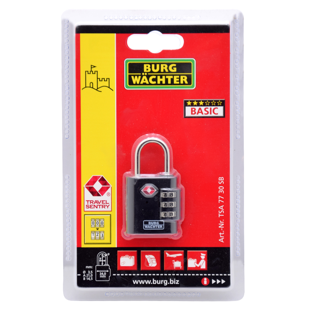 BURG WACHTER TSA77 30SB bőrönd lakat TSA 77 30 SB 3 780 Ft / db [2 db 2%] [5 db 3%] [10 db 5%] Gyártó: BURG WACHTER Cikkszám: S005_BW30961 Vonalkód (EAN13): 4003482309612 Súly: 0,05 kg Átvétel: Ez a termék boltunkban személyesen is átvehető. Burg Wachter TSA 77 30 SB bőrönd lakat BW30961 számzáras lakat festett acél test krómozott acél kengyel 3 tárcsás számzár átkódolható számkombináció 1.000 kódvariáció könnyű kezelhetőség Travel Sentry Approved kulcsos nyitás vámellenőrzéskor biztonságos csomagátvizsgálás ideális utazólakat ezüst vagy fekete színben SB: bliszter csomagolásTulajdonságokZárszerkezet:SzámzárasKengyel vastagság:3.5 mmKengyel távolság:14.5 mmKengyel magasság:21 mmTeljes magasság:59 mmTömeg:0,05 kg Mennyiség db Kosárba tesz