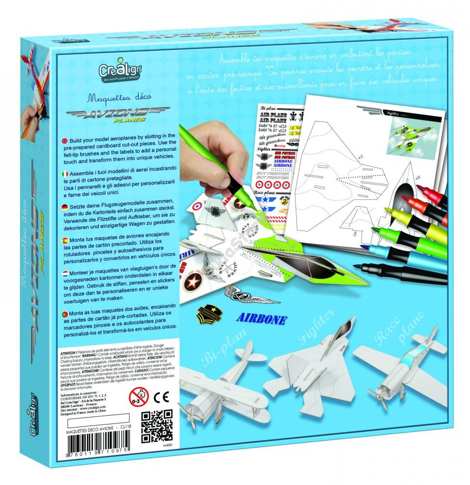 CreaLign Makettkészítő - Repülők 7 990 Ft / db [2 db 2%] [5 db 3%] [10 db 5%] Gyártó: CreaLign Cikkszám: S140_CL118 Vonalkód (EAN13): 3760119710975 Súly: 0,40 kg Készíts repülőket!Építsd meg a vázat kemény kartonpapírból, majd színezd ki a különleges filctollakkal és díszítsd a hozzájuk tartozó matricákkal. A színes gyártmányok máris repülhetnek!Tartalma:- 3 db kartonból készíthető repülő modell- 6 db színes filctoll- matricákKreatív készlet a francia Crealign' gyártótól. Saját forgalmazású termék.A doboz mérete: 24,5*24,5*4,5 cm Jellemzők Korcsoport: 6 éves kortól Kinek ajánljuk: Fiúknak Mennyiség db Kosárba tesz
