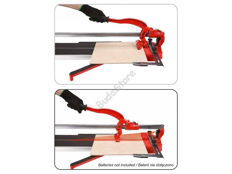 Csempevágó 800mm Yato - YT-37022 58 300 Ft / db [2 db 2%] [5 db 3%] [10 db 5%] Gyártó: YATO Cikkszám: S052_YT-37022 Vonalkód (EAN13): 5906083057656 Súly: 7,17 kg Vágó lézermutatóval, legfeljebb 800 mm hosszú kerámia burkolólapokhoz. A készülék stabil alapja alumíniumból készül. A kombinált vágókés és az effektív megszakító egyetlen acélvezetőn / a csapágyas megszakítóegységen mozog.A 850 mm hosszú munkalapot technikai mikrogumi vonalvezetéssel látták el. Két kihajtható oldaltámasszal rendelkezik, amelyeket nagy táblák vágásakor használnak. A gérvágásokat egy további, állítható fémszög is megkönnyíti.Vágógép legfeljebb 12 mm vastag és legfeljebb 800 mm hosszú kerámia burkolólapok vágására és törésére. Amikor a lézermutató be van kapcsolva, a vágandó lemez felületén piros sugár jelenik meg, amely a vágás pontos vonalát mutatja.- A vágható maximális vastagság 12 mm- A vágható maximális átló 597 mm- Vágókés, csapágy, átmérő 22 mm / furat 6 mm, vastagság 6 mm.- A vágó lézeres vágásjelzővel rendelkezik / 3 db 1,5 V-os AA típusú elem táplálja. A lézer tiszta, jól látható piros vonalat vetít ki, amely mentén a vágókés mozog. Lézerrel kerüljük a vonalak megjelölését a vágott csempe felületén.Paraméterek:- Vágási hossz: 800mm / átló 597mm- 1 lézervágó vonalmutató- Max. Vágható vastagság: 12 mm- Átmérő: 22mm / golyóscsapágy- Súly: 9500g- Hossz: 850mm Mennyiség db Nem rendelhető