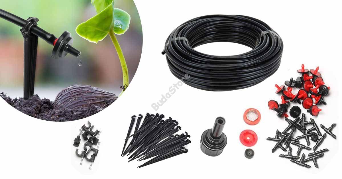 Alakíts ki saját csepegtető rendszert a konyhakertbe vagy a virágágyásba! A készlet tartalmaz egy 23 méter hosszú, vékony tömlőt, melyet annyi darabra és olyan méretre vághatsz, hogy a növényeid számára ideális öntözőhálózatot hozhass létre. A különböző alakú csatlakozókkal, rögzítőkkel és bilincsekkel könnyedén testre szabhatod a csepegtető rendszert.