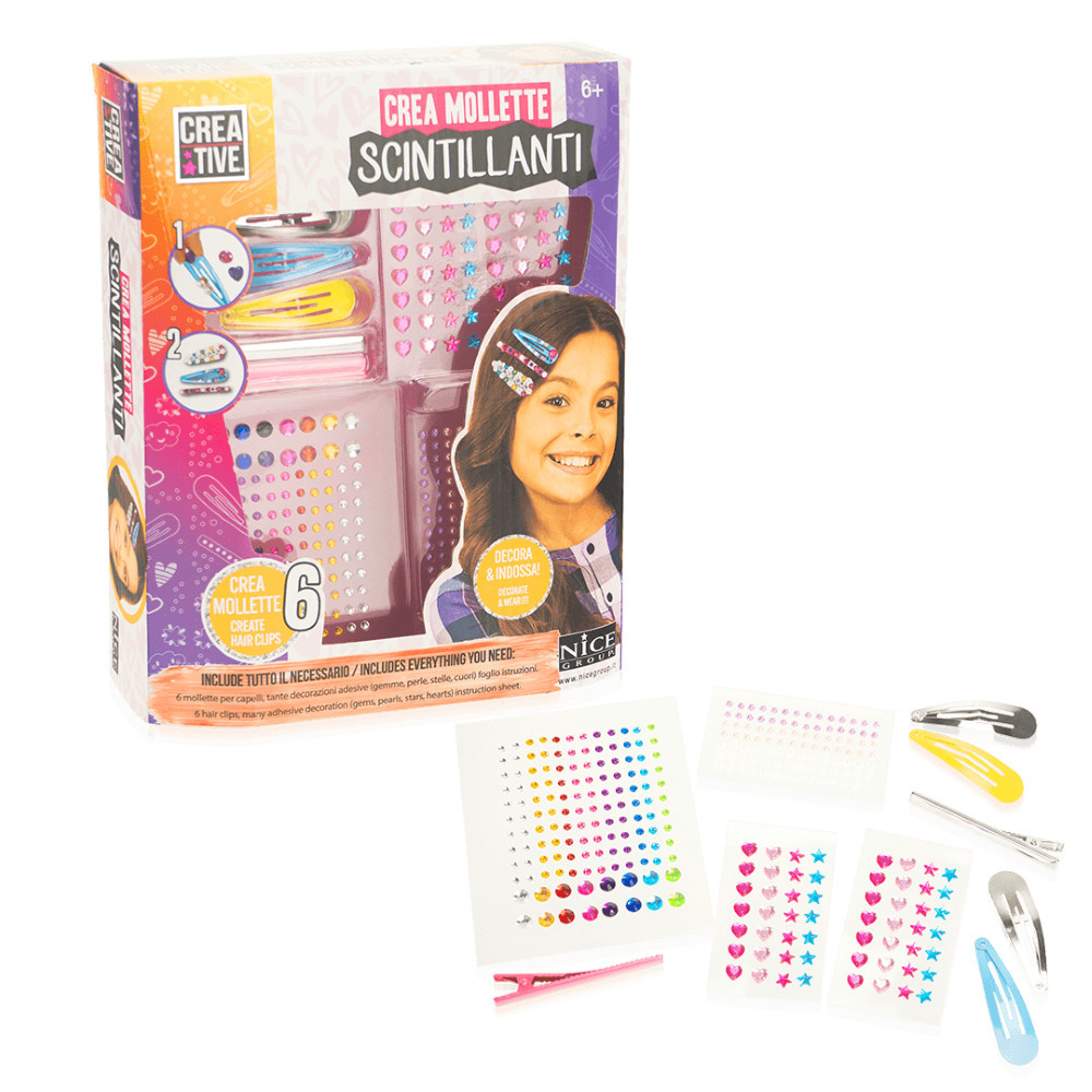 Csillogó hajcsat készítő kreatív készlet, Nice Group NC02018 5 290 Ft / db [2 db 2%] [5 db 3%] [10 db 5%] Gyártó: NICE GROUP Cikkszám: S140_NC02018 Vonalkód (EAN13): 8056779020185 Súly: 0,50 kg Készíts díszes hajcsatokat a Nice group legújabb kreatív készletével és tűnj ki a tömegből ezekkel a vibráló színekkel!A csomagban mindent megtalálsz, ami 6 db csat elkészítéséhez szükséges:- színes csatok- öntapadó strasszkövek különböző méretekbenSaját forgalmazású termékünk a Nice Group márkától. Jellemzők Korcsoport: 6 éves kortól Kinek ajánljuk: Lányoknak Mennyiség db Kosárba tesz