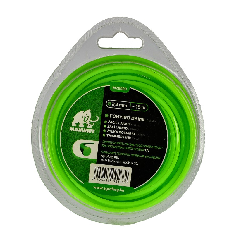 Damil 2.4mm kerek 15 méter MAMMUT bliszteres M20008 1 350 Ft / db [2 db 2%] [5 db 3%] [10 db 5%] Gyártó: MAMMUT Cikkszám: S006_M20008 Átvétel: Ez a termék boltunkban személyesen is átvehető. Bliszterbe csomagolt, 15 méteres, 2.4mm átmérőjű, kerek profilú damil, damilfejbe. 800W-os és a feletti gépekre Átmérő:2.4mm Hossz:15m Profil:kerek Kiszerelés:bliszteres Típusok: 15 méter: MAMMUT, MAMMUT: Mennyiség db Kosárba tesz