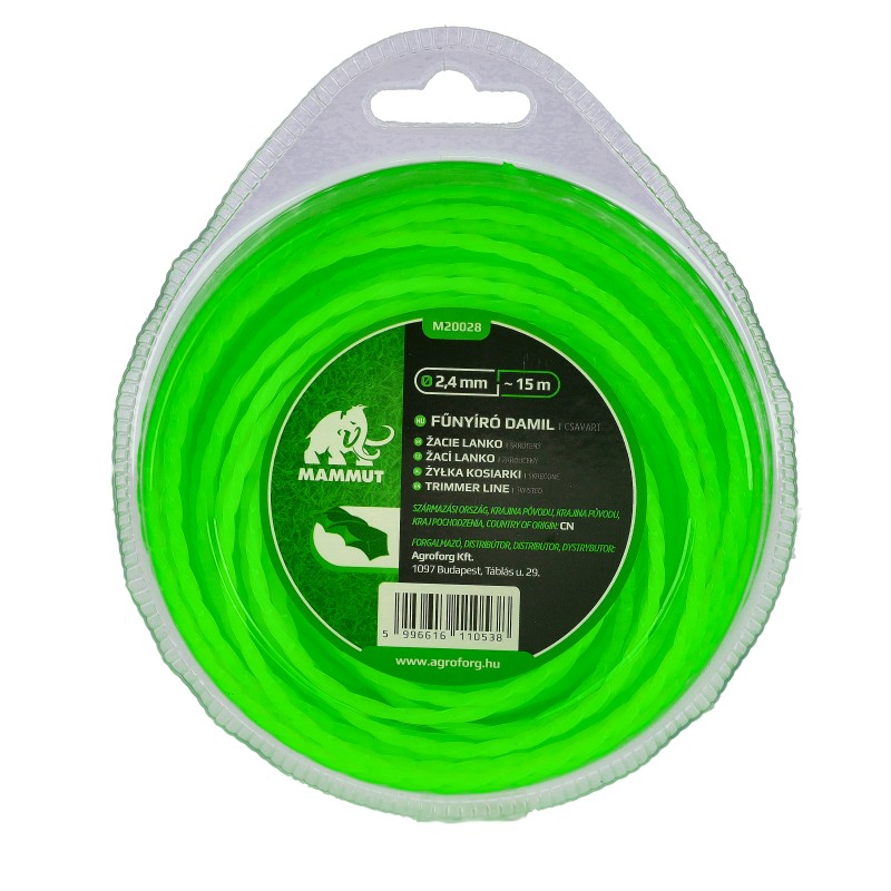 Damil 2.4mm szögletes csavart 15 méter MAMMUT bliszteres M20028 1 290 Ft / db [2 db 2%] [5 db 3%] [10 db 5%] Gyártó: MAMMUT Cikkszám: S006_M20028 Átvétel: Ez a termék boltunkban személyesen is átvehető. Bliszterbe csomagolt, 15 méteres 2.4 mm átmérőjű szögletes csavart profilú damil damilfejbe. 800W-os és a feletti gépekre Átmérő:2.4mm Hossz:15m Profil:szögletes csavart Kiszerelés:bliszteres Típusok: 15 méter: MAMMUT, Mennyiség db Kosárba tesz