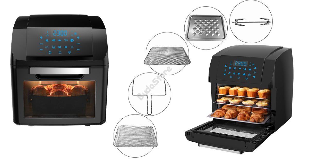 Süss, grillezz, aszalj pusztán meleg levegővel, olaj nélkül! Sokoldalú, digitális meleglevegős sütőnkkel egészségesebb ételeket készíthetsz családodnak. Szabályozhatod a hőfokot és a sütési időt rajta, hogy a lehető legtökéletesebb végeredményt kapd. 9 előre beállított program közül is választhatsz. A sütési beállításokat, a hőfokot és a hátra lévő időt digitális kijelzőjén tudod nyomonkövetni.