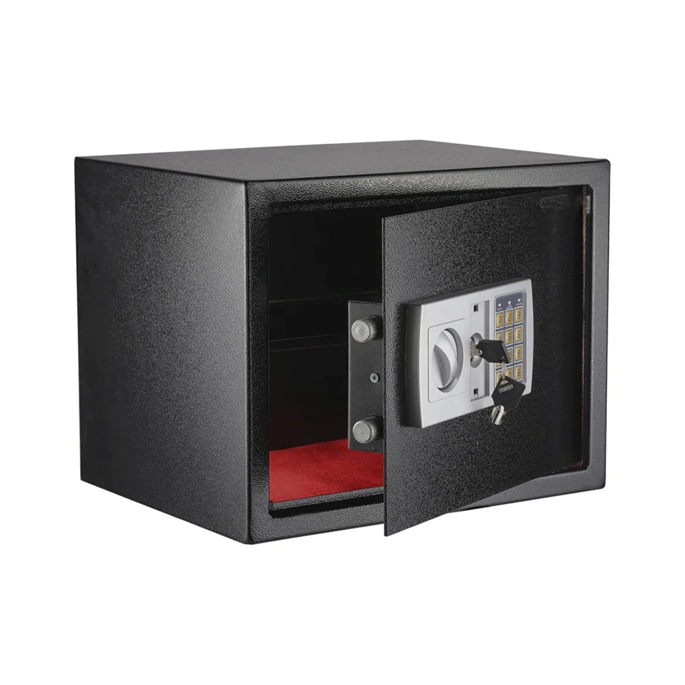 A digitális széf elemmel működik, és megbízható védelmet nyújt az értékeid számára. A biztonsági rendszer kialakítása biztosítja, hogy csak a megfelelő kód megadásával nyíljon ki, így extra védelmet nyújt a fontos dokumentumok, ékszerek vagy egyéb értéktárgyak számára.
