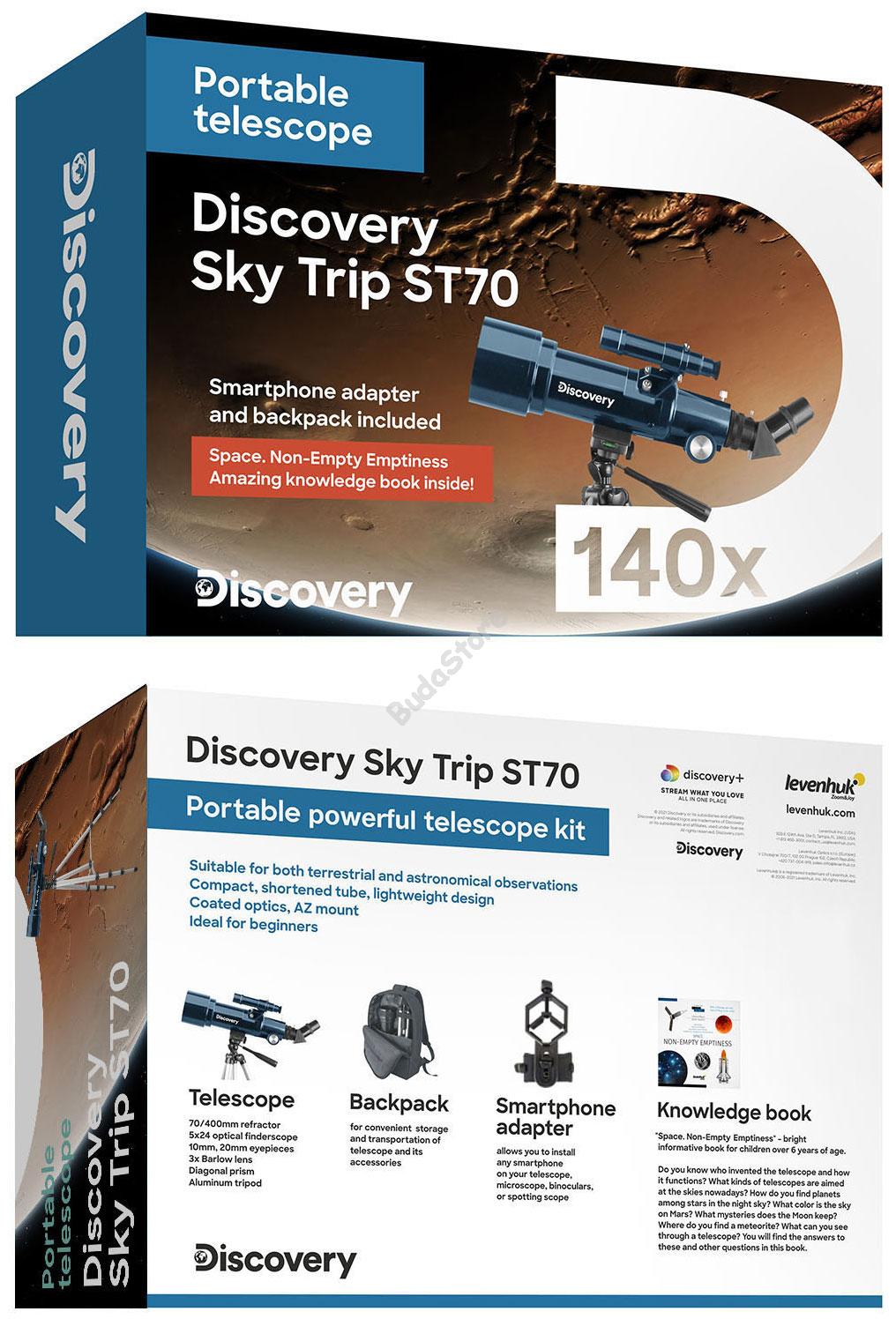 Discovery Sky Trip ST70 teleszkóp és könyv 79206 42 740 Ft / db [2 db 2%] [5 db 3%] [10 db 5%] Gyártó: DISCOVERY Cikkszám: S101_79206 Súly: 3,00 kg Átvétel: Ez a termék boltunkban személyesen is átvehető. A Discovery Channel a glóbusz csodáival, változatosságával és szórakoztató érdekességeivel tájékoztatja, szórakoztatja és inspirálja nézőit szerte a világban. A csatorna több millió embernek ad lehetőséget a felfedezésre, a kíváncsiságuk kielégítésére – a különböző kategóriákba tartozó műsorok összeállításával, ideértve tudományt, a felfedezést, a kalandokat, a történelmet és azokat a műsorokat, amelyek segítenek betekinteni a kulisszák mögé, hogy jobban megismerjük azokat az embereket, a helyeket, a szervezeteket, amelyekkel osztozunk ezen a világban és amelyek alakítják azt. Büszkén mutatjuk be a Discovery optika termékcsaládot, amelyet a Levenhuk gyártott és a Discovery inspirált. A könyvmelléklettel kínált Levenhuk Discovery Sky Trip ST70 egy extrakompakt refraktor teleszkóp, ami tökéletes választás a világűrrel történő kezdeti ismerkedéshez. A kezdő csillagászok a 'Világűr. A nem üres üresség' című ismeretterjesztő könyvből lenyűgöző dolgokat tudhatnak meg a csillagfigyelésről, majd ezeket az információkat azonnal át is ültethetik a gyakorlatba. Nemcsak a Holdat és a bolygókat figyelheti meg, hanem nagyteljesítményű figyelőtávcsőként használva a földi tájakat is. A megfigyelők még a legfényesebb mélyégobjektumokat is látni fogják. A Levenhuk Discovery Sky Trip ST70 könnyen használható, hiszen az optikai tubus egy alt-azimut tartószerkezethez van rögzítve, ami lehetővé teszi a tubus fel-le és balra-jobbra mozgatását. A teleszkóphoz számos tartozék jár, beleértve egy Barlow-lencsét, különböző fókusztávolságú szemlencséket, egy optikai keresőtávcsövet, egy diagonális prizmát, valamint egy okostelefonhoz való adaptert. A nagyítási fokok között váltogatva felfedezheti a világűr szépségeit, valamint megörökítheti fényképeken a megfigyelései eredményeit. Az alumínium háromlábú állvány könnyen beállítható a testmagasságához. A Levenhuk Discovery Sky Trip ST70 kitűnik a sorból, hiszen más refraktorokkal szemben kisméretű az optikai tubusa. Sok más hasonló modellhez képest csak fele olyan hosszú a tubusa. Így a teleszkóp könnyen szállítható – akár még autós kirándulásokra is magával viheti. A készletben a biztonságos szállítást elősegítő, kifejezetten ilyen eszközökhöz való hátitáska, valamint számos egyéb tartozék található. További előny az utazók számára a gyors és könnyű összeszerelés. Fő jellemzők: Rövid optikai tubusú refraktor Földi és égi objektumok megfigyelése Az alt-azimut tartószerkezetnek köszönhetően könnyen kezelhető Teljesen bevonatolt üveg és szemlencseadapter a színes fényképekhez Bővített készlet (képes ismeretterjesztő könyv) A készlet tartalma: Teleszkóp optikai tubusa Alt-azimut tartószerkezet Alumínium háromlábú állvány 5x24-es optikai keresőtávcső K10 mm szemlencse, 1,25' K20 mm szemlencse, 1,25' Diagonális prizma 3x Barlow-lencse Okostelefonhoz való adapter Hátitáska A „Világűr. A nem üres üresség” című ismeretterjesztő könyv Felhasználói kézikönyv és garanciajegy MárkaDiscoverySzavatosság10 évEAN5905555014586A csomag méretei (HxSzxM):44x33x15 cmSzállítási súly3 kgOptikai kialakításrefraktorOptikai elemek anyagaoptikai üvegOptikai bevonatteljesen és több rétegben bevonatoltObjektívlencse átmérője (rekesznyílás), mm70Fókusztávolság, mm400Legnagyobb gyakorlati nagyítás, x140Rekesznyílásf/5.71Határmagnitúdó11.33SzemlencsékK10 mm (40x), K20 mm (20x)Szemlencsetubus átmérője, hüvelyk1,25Barlow-lencse3xKeresőtávcsőoptikai, 5x24Háromlábú állványalumíniumHáromlábú állvány magassága, mm400–1250TeleszkópszabályozáskéziÁllványalt-azimutOptikai tubus anyagaalumíniumFelhasználói szintgyerekeknekAz összeszerelés és a telepítés nehézségi szintjerendkívül egyszerűMegfigyelt objektuma Naprendszer bolygói, földi objektumokTok/doboz/táska a készletbenhátizsákDoboz/táska/hátizsáka a készletbenyesKibővített tartozékkészletyes Mennyiség db Kosárba tesz